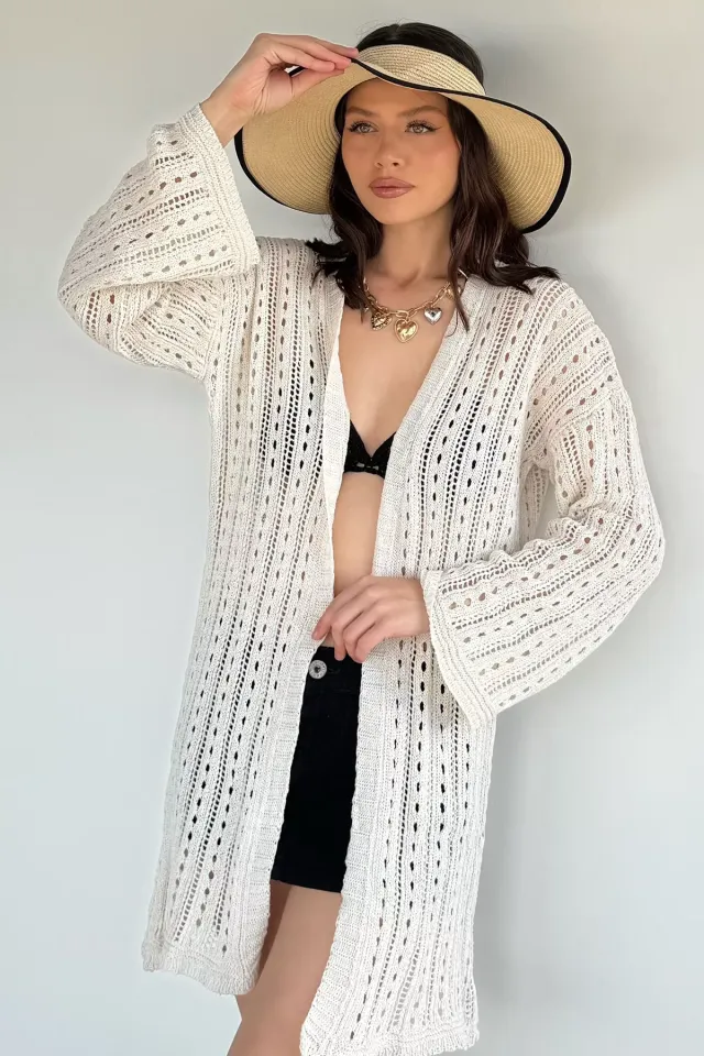 كارديغان تريكو كروب عصري بياقة دائرية وإغلاق أمامي بأزرار مع نقشة روابط لإطلالات شتوية يومية أنيقة. ٪100 قماش تريكو (نسيج ناعم). غير مبطن بتصميم مريح يسمح بالتهوية.