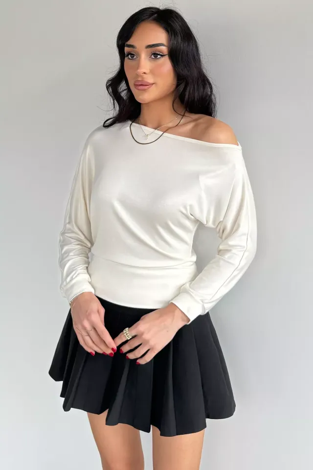 بلوزة قصيرة بكتف واحد وحمالة رفيعة من قماش فيسكوز مرن لإطلالة صيفية عصرية وأنيقة.