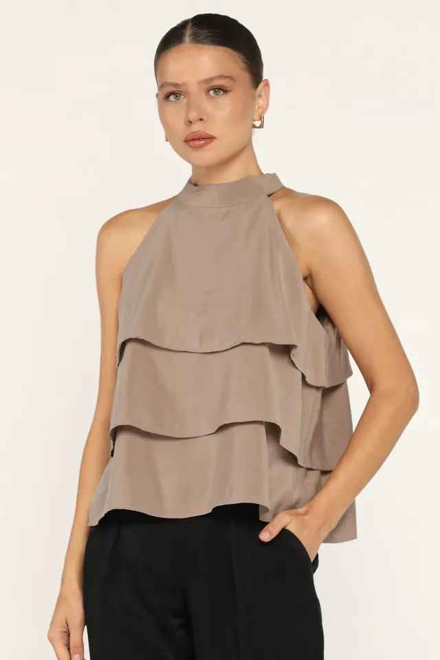 بلوزة نسائية ساندي بتفصيل درابي وأكمام واسعة - Beyond Store