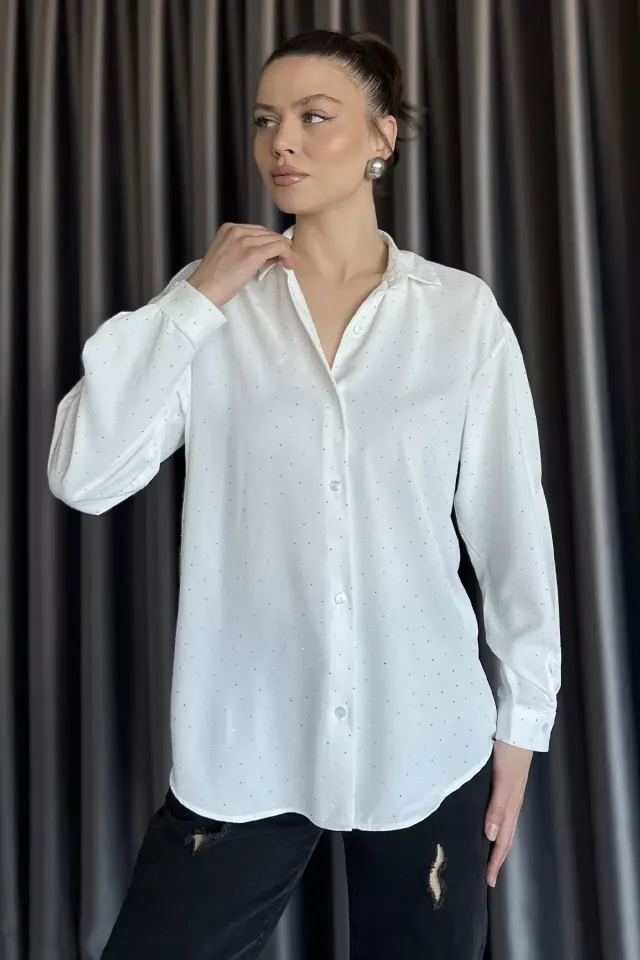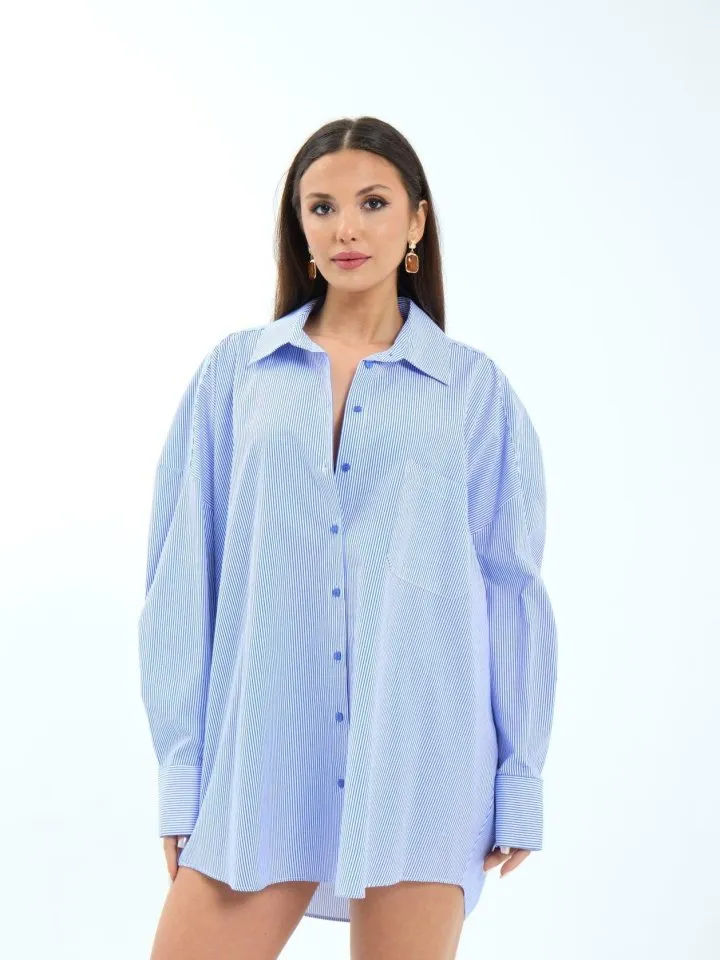 قميص قصير بقماش يشبه الكتان وحافة سفلية منحنية للنساء