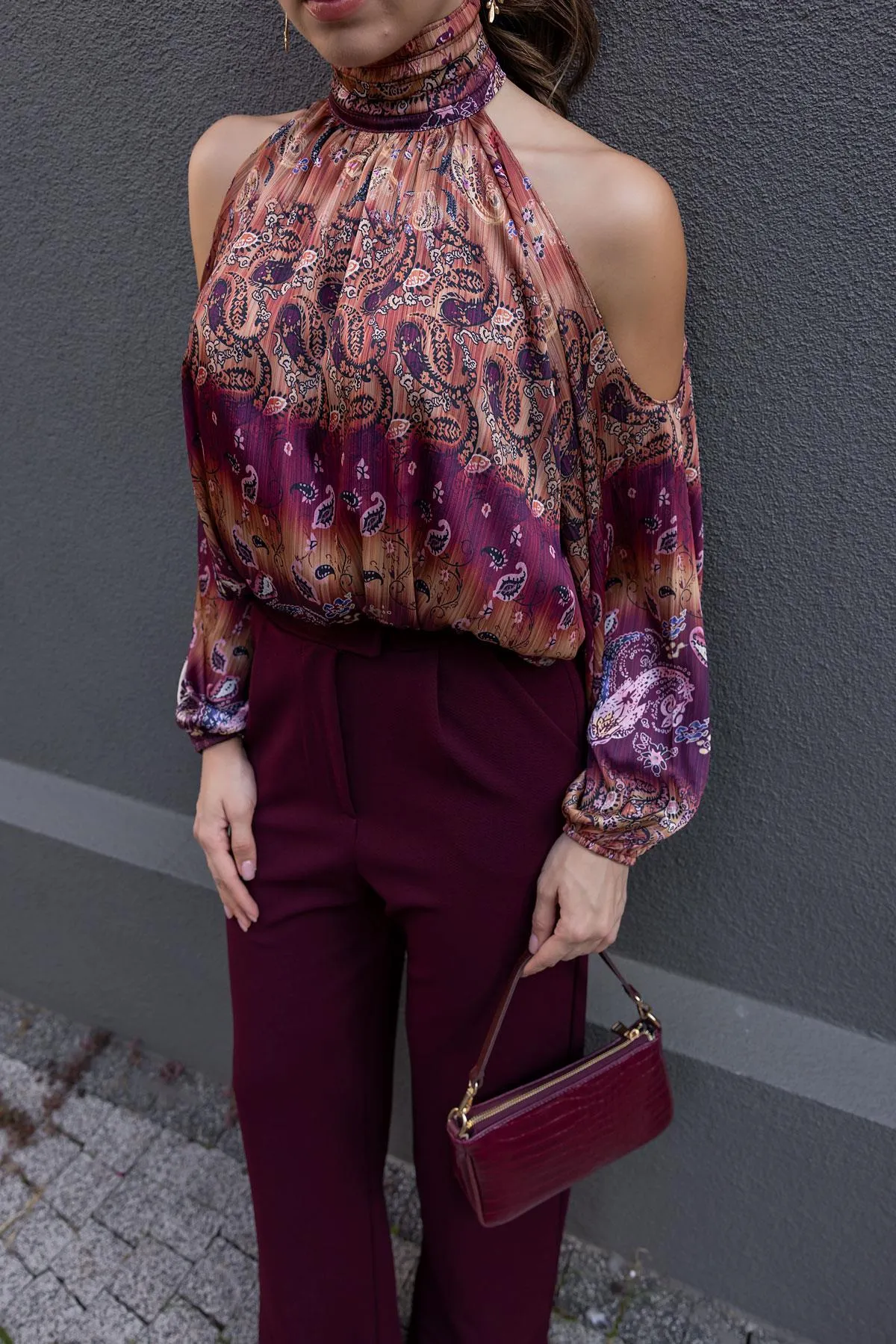 بلوزة قطنية مجعدة بربطة عنق قابلة للتعديل للنساء - Beyond Store