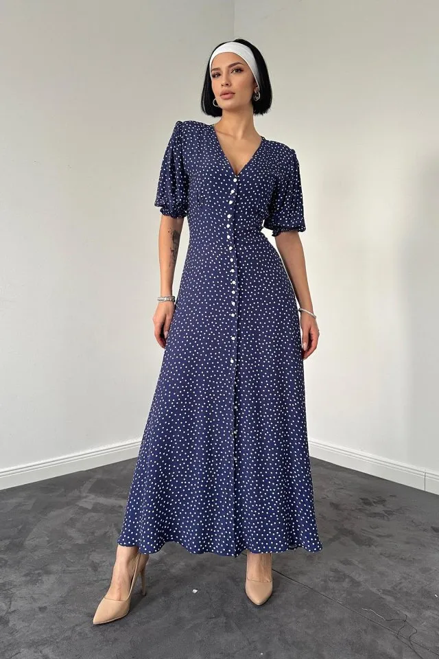 الموديل ترتدي مقاس 36 – الطول 175 سم، الصدر 81 سم، الخصر 61 سم، الورك 89 سم