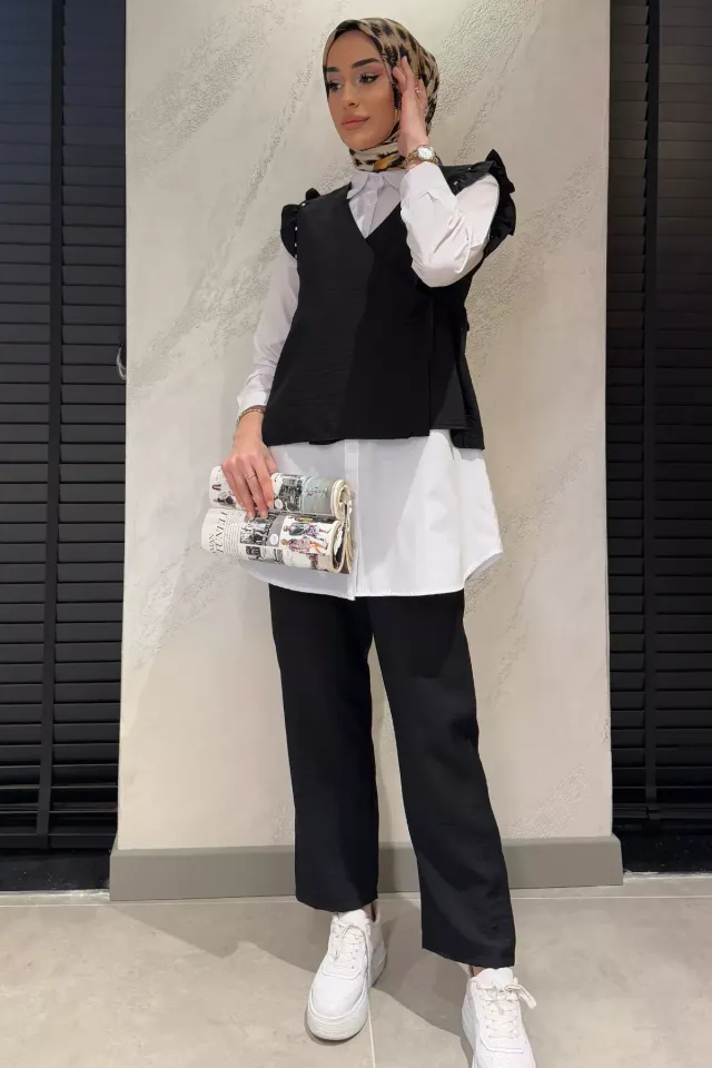 قميص نسائي محتشم بسطح ساتان لامع وحافة منحنية، يتميز بقماش ناعم وسقوط خفيف يمنح مظهرًا أنيقًا ومريحًا. مصنوع من بوليستر 100% بقصّة منتظمة تحتضن القوام بلطف دون ضيق، ليمنحك أناقة عصرية مريحة طوال اليوم.
