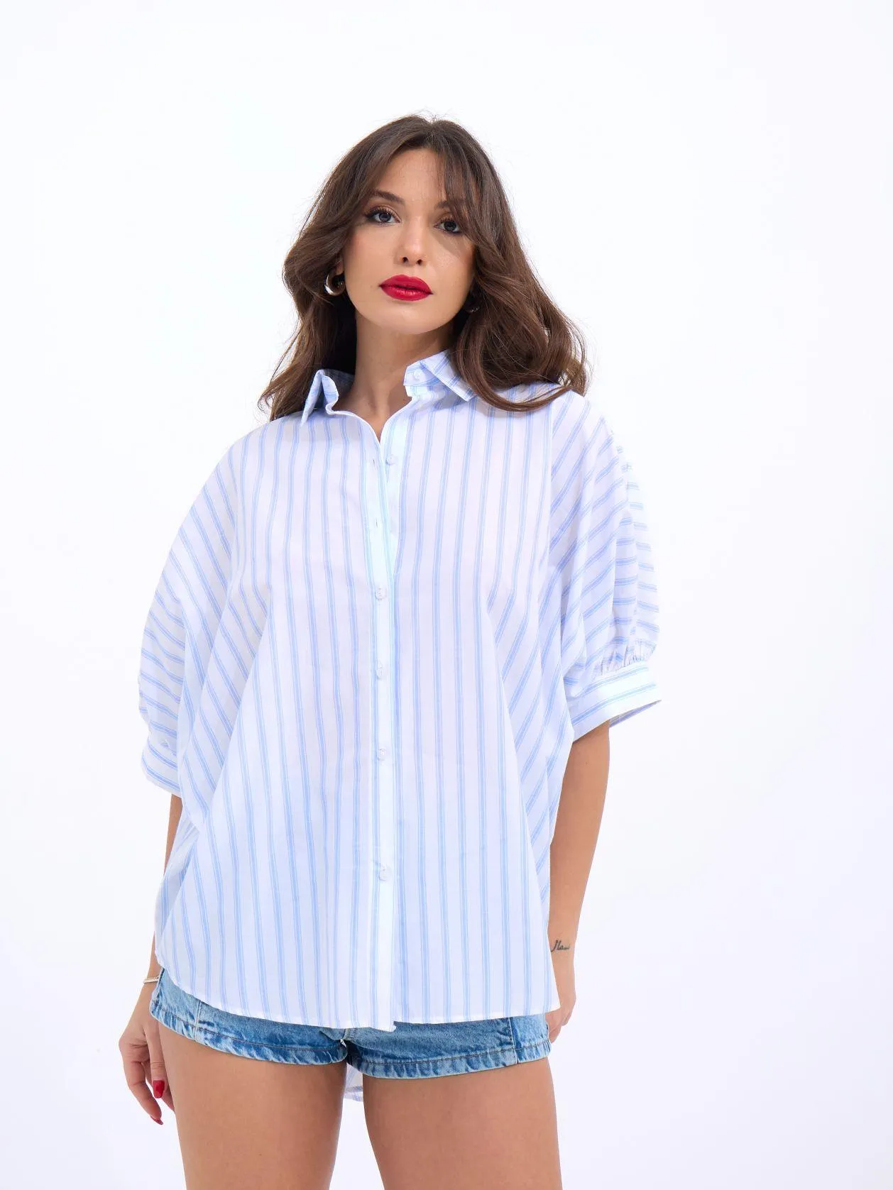 قميص جاكيت واسع من الجلد الصناعي بأزرار كبس ولمسة ناعمة يمنحك إطلالة عصرية أنيقة بطابع عملي.