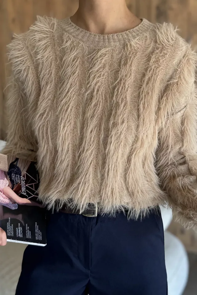 كنزة بيلوش ناعمة بياقة مادونا مكشوفة الأكتاف، بتصميم مطاطي يمنحك راحة وأناقة مثالية لإطلالة شتوية دافئة وعصرية.
