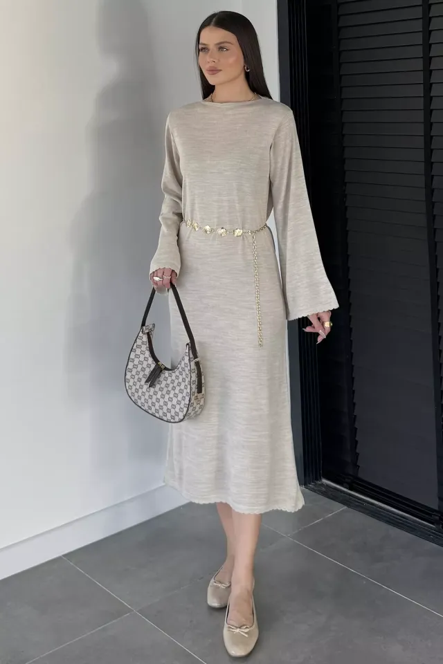 فستان ميني محبوك بدون أكمام بياقة دائرية - Beyond Store