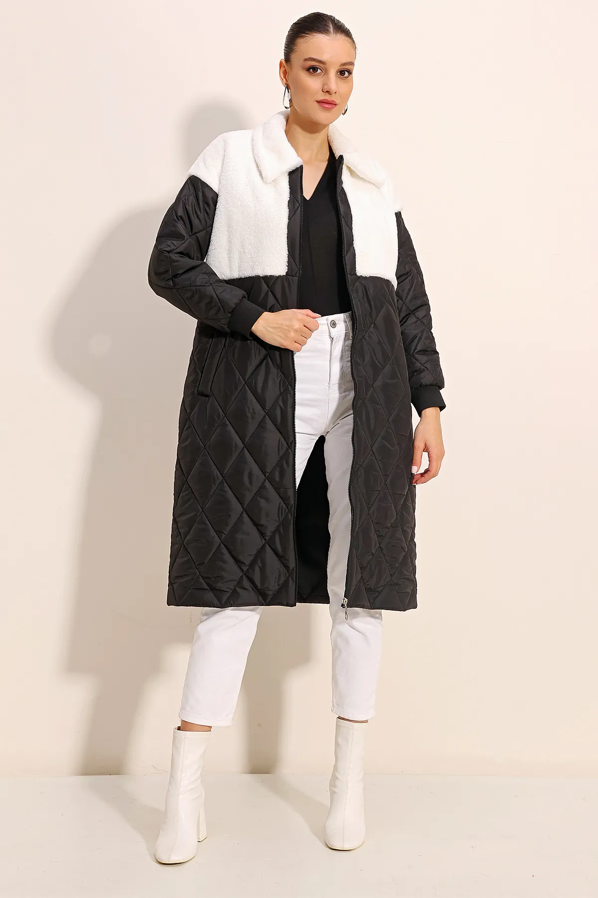 مبطن بالكامل بقصّة واسعة وياقة عريضة تمنح لمسة فخمة