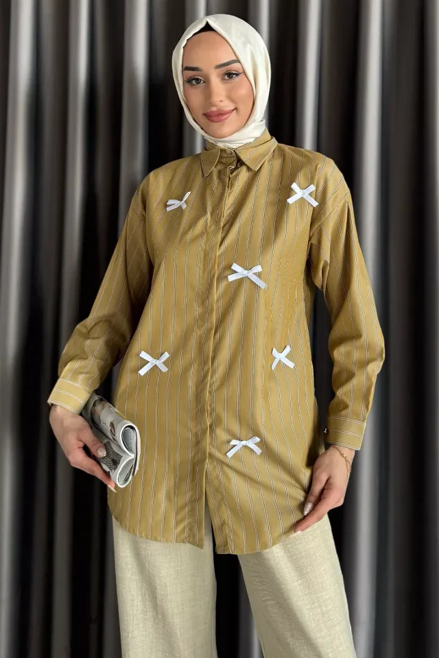 قميص نسائي محتشم بسطح ساتان لامع وحافة منحنية، يتميز بقماش ناعم وسقوط خفيف يمنح مظهرًا أنيقًا ومريحًا. مصنوع من بوليستر 100% بقصّة منتظمة تحتضن القوام بلطف دون ضيق، ليمنحك أناقة عصرية مريحة طوال اليوم.