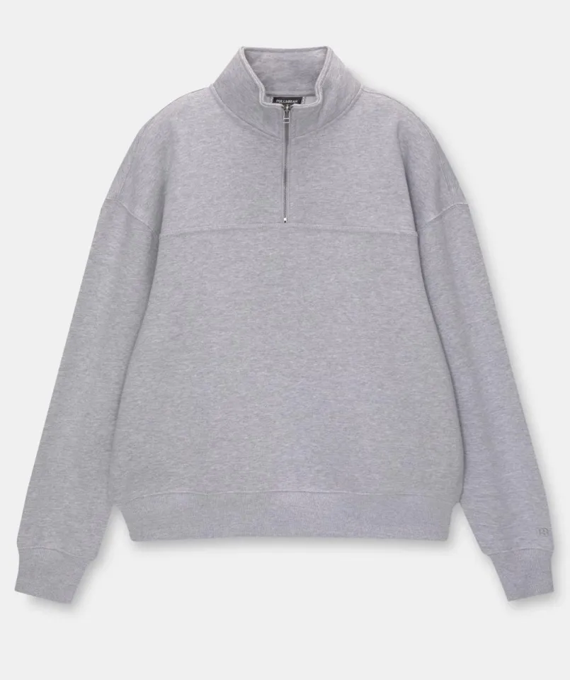 سويت شيرت نسائي بياقة بسحاب وتفصيل شريط أبيض