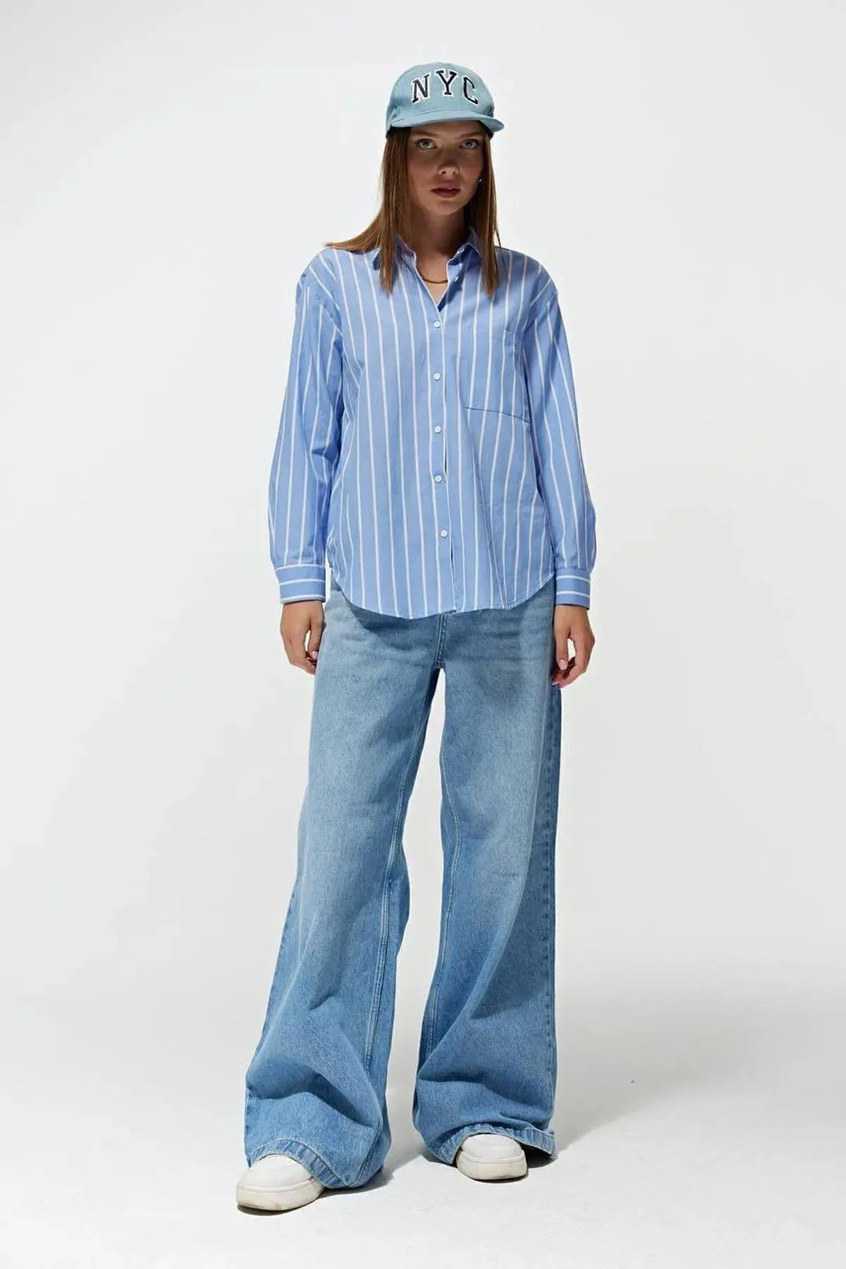 الموديل ترتدي مقاس M/36 – الطول 175 سم، الصدر 81 سم، الخصر 61 سم، الورك 89 سم