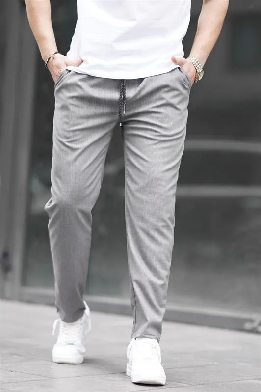 بنطال رياضي رجالي طويل مخطط، عريضة خصر مرن وجيوب مزدوج، من 100٪ قطن، مريح للتمارين اليومية والكاجوال.