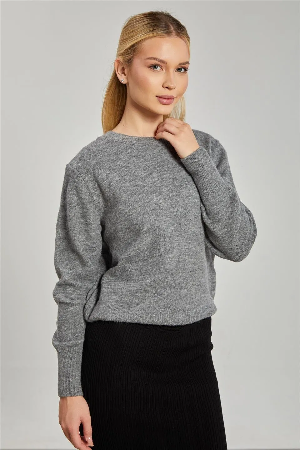 كنزة تريكو مخططة بياقة دائرية وأزرار على الكتف للنساء