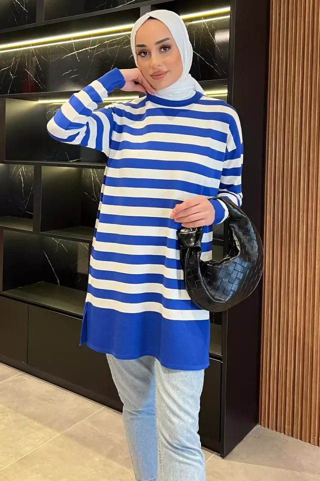 قميص نسائي محتشم طويل بقصّة مريحة وتصميم بحافة سفلية منحنية. مصنوع من قطن بنسبة 70% وبوليستر بنسبة 30% لملمس ناعم وراحة في الارتداء. يتميز بقَصّة واسعة تمنح حرية الحركة، مثالي للإطلالات اليومية والكاجوال.
