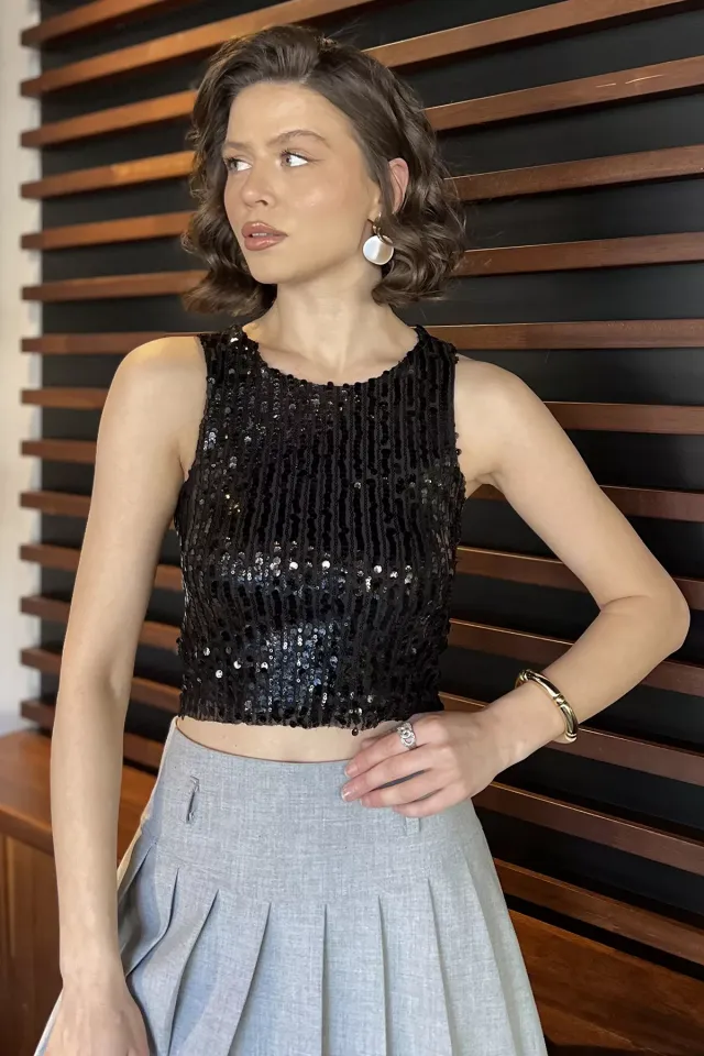 بلوزة قصيرة بكتف واحد وحمالة رفيعة من قماش فيسكوز مرن لإطلالة صيفية عصرية وأنيقة.