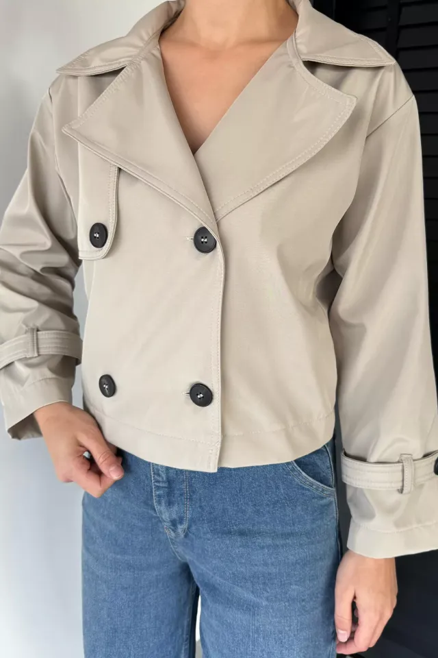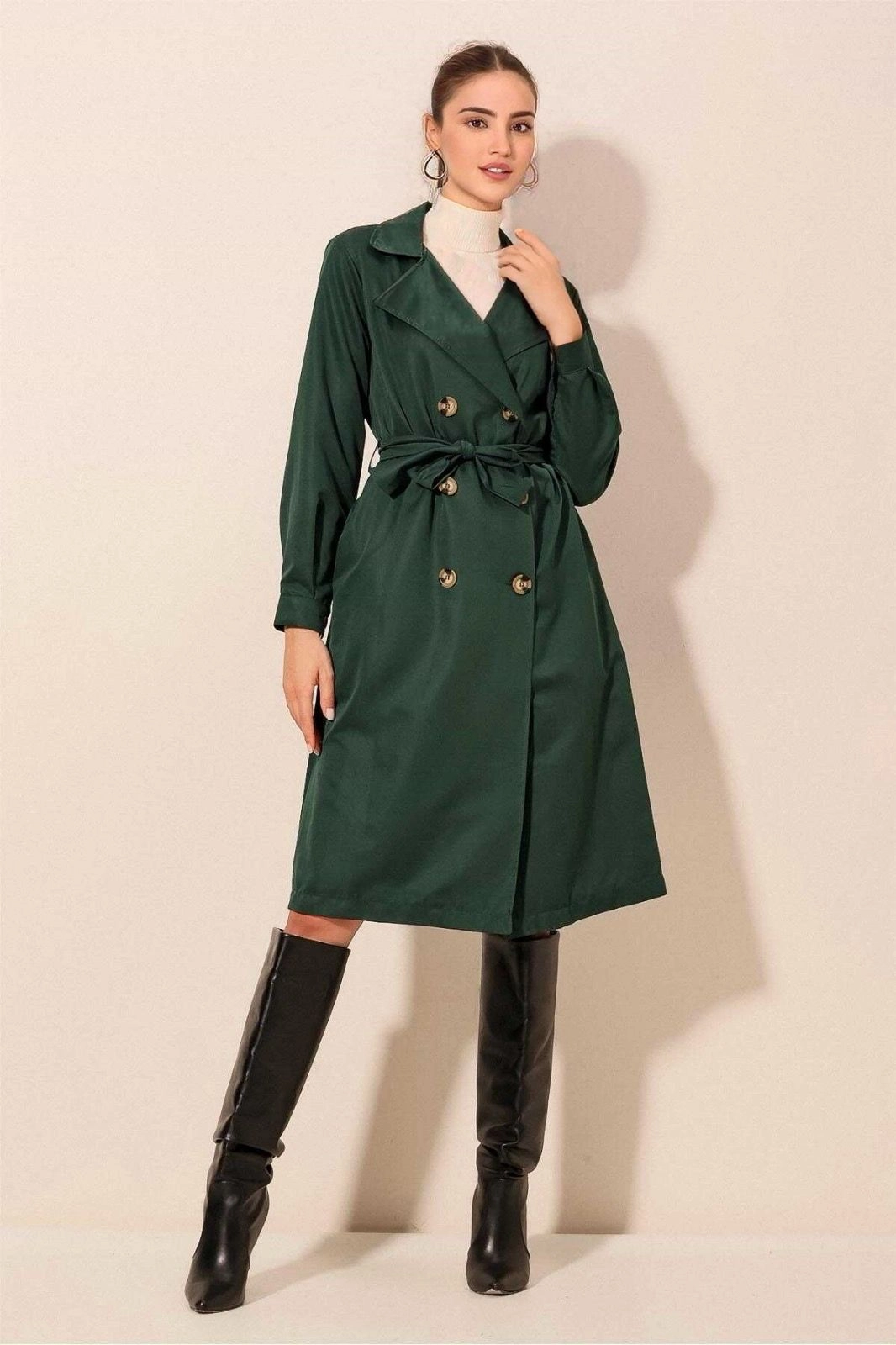 ترنش كوت نسائي خفيف بستايل ياقة مزدوجة وأزرار أمامية وحزام خصر يمنحك إطلالة أنيقة ومريحة.