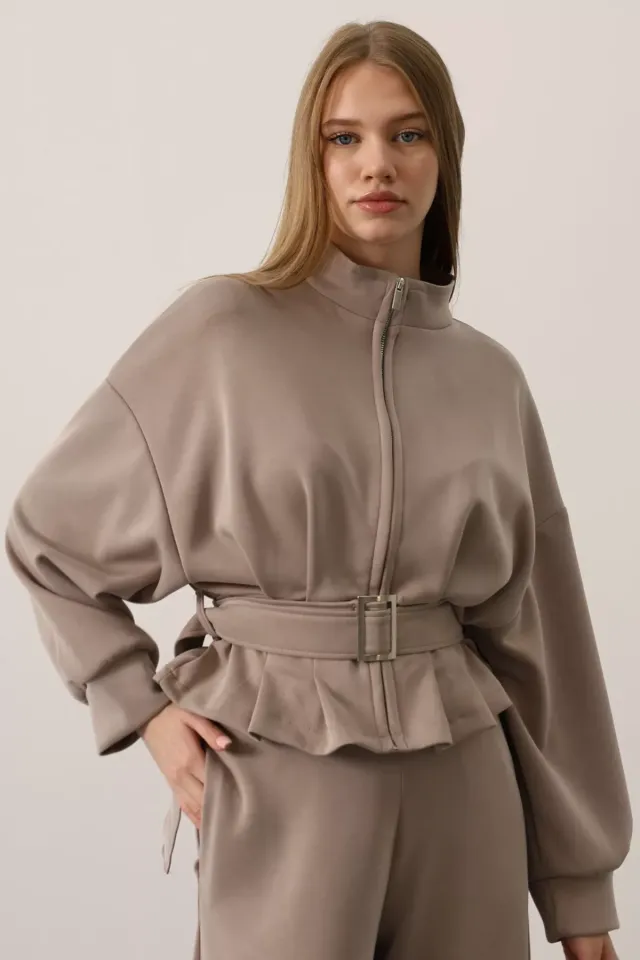 جاكيت نسائي بواجهة مفتوحة وياقة بطبقات بتصميم أنيق وخفيف مثالي للمواسم الانتقالية بملمس قماشي مميز.