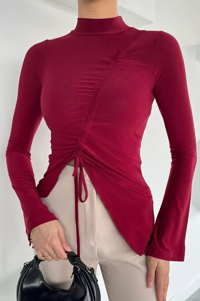 بلوزة محبوكة بأكمام كشكش وسلسلة معدنية قابلة للفصل تضيف لمسة أنيقة وجذابة لإطلالتك اليومية.