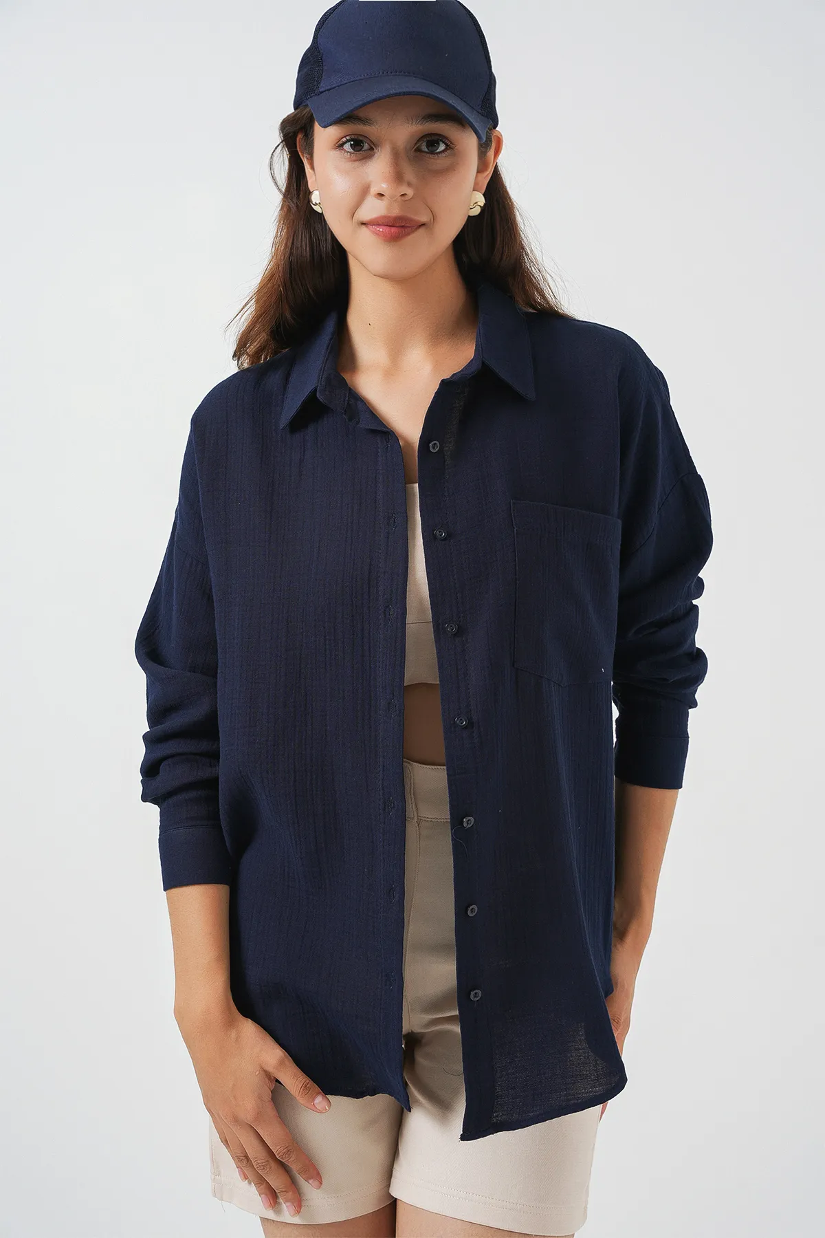 قميص بوبلين بتصميم بويفريند مع تفاصيل أزرار خلفية وأكمام طويلة يمنحك إطلالة عصرية ومريحة للاستخدام اليومي.