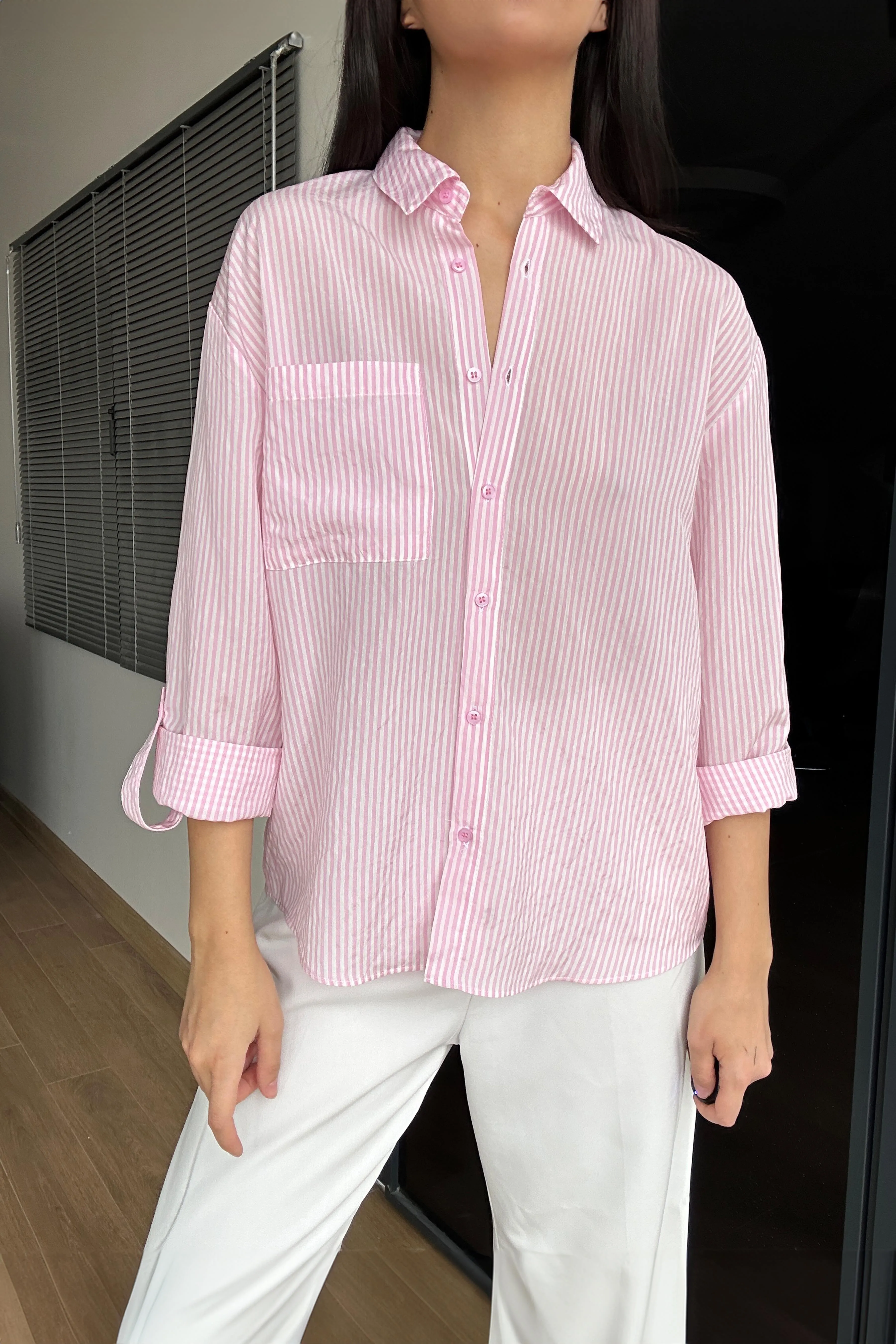 قميص طويل أوفر سايز بحافة سفلية منحنية وقصة مريحة مصنوع من مزيج قطن ناعم يمنحك أناقة يومية سهلة.