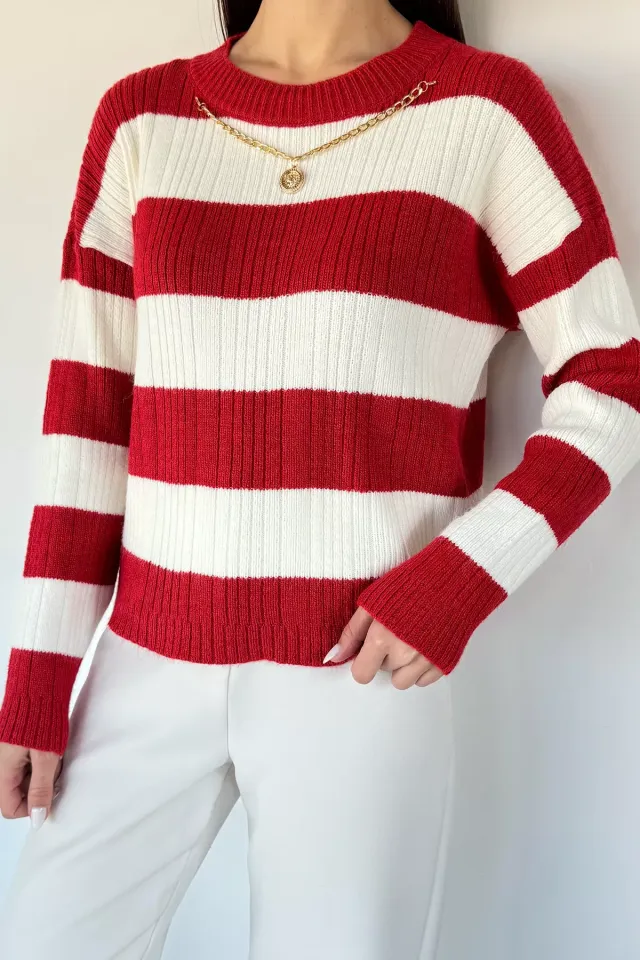 كنزة محبوكة مضلعة بياقة عالية ضيّقة - Beyond Store