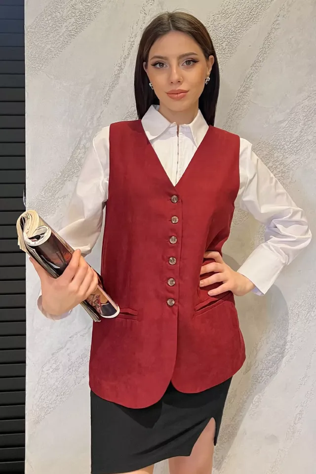 الموديل ترتدي مقاس M/38 – الطول 176 سم، الصدر 86 سم، الخصر 60 سم، الورك 90 سم