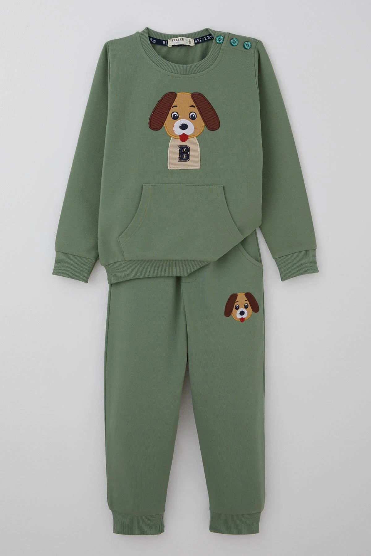 بدلة رياضية شتوية مخططة للأولاد بتصميم غطاء رأس وطبعة كلب لطيفة، مصنوعة من قماش ناعم يمنح دفئًا وراحة طوال الموسم.