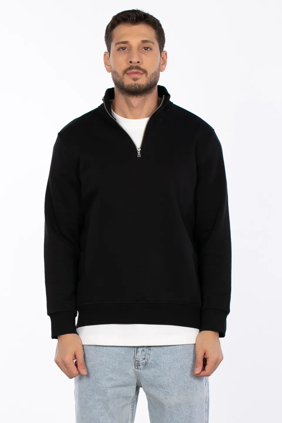 بلوزة رجالية كاجوال بياقة واقفة وسحاب أمامي، مريحة وأنيقة، مثالية للارتداء اليومي والعادي.