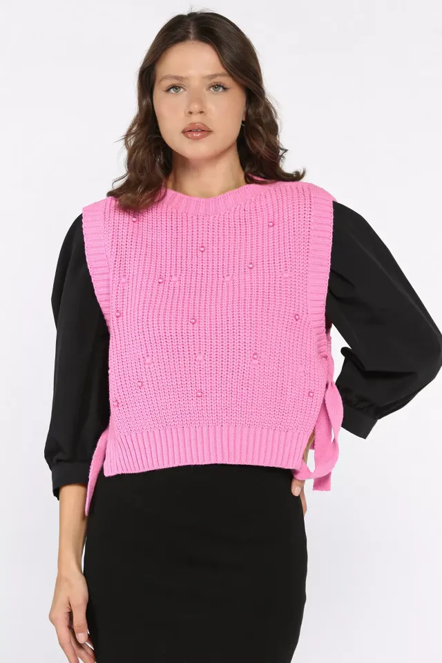 كنزة تريكو مضلعة بياقة دائرية وأكمام طويلة تمنحك أناقة مريحة في موسم الشتاء.