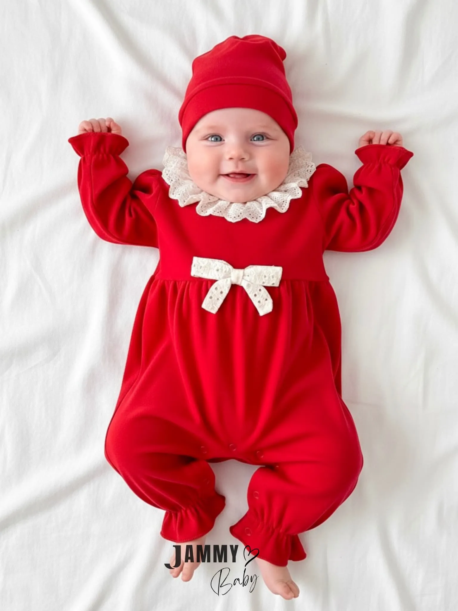 رومبر مخملي للبنات الرضع بياقة دانتيل ناعمة يمنح لمسة من الدفء والأناقة في فصل الشتاء. مصنوع من مخمل فاخر بخامة ناعمة الملمس ومريحة على البشرة لتوفير إحساس لطيف وراحة مثالية طوال اليوم. قصة قياسية يوصى باختيار المقاس المعتاد لطفلتك.