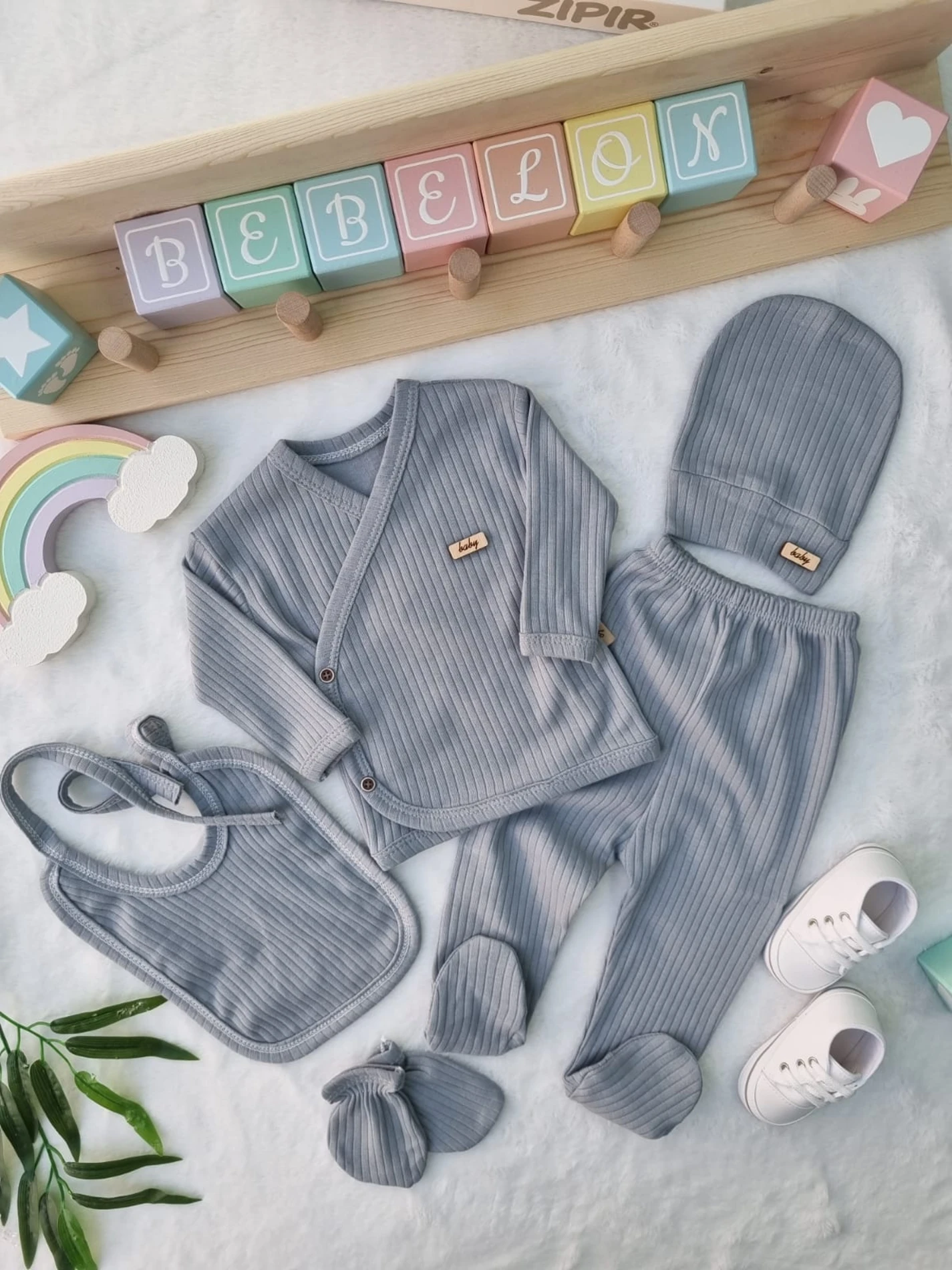 طقم ناعم مكون من 5 قطع للبنات الرضع بأكمام طويلة، يشمل بنطلون، قبعة، قفازات ومريلة للراحة والأناقة في جميع الفصول.
