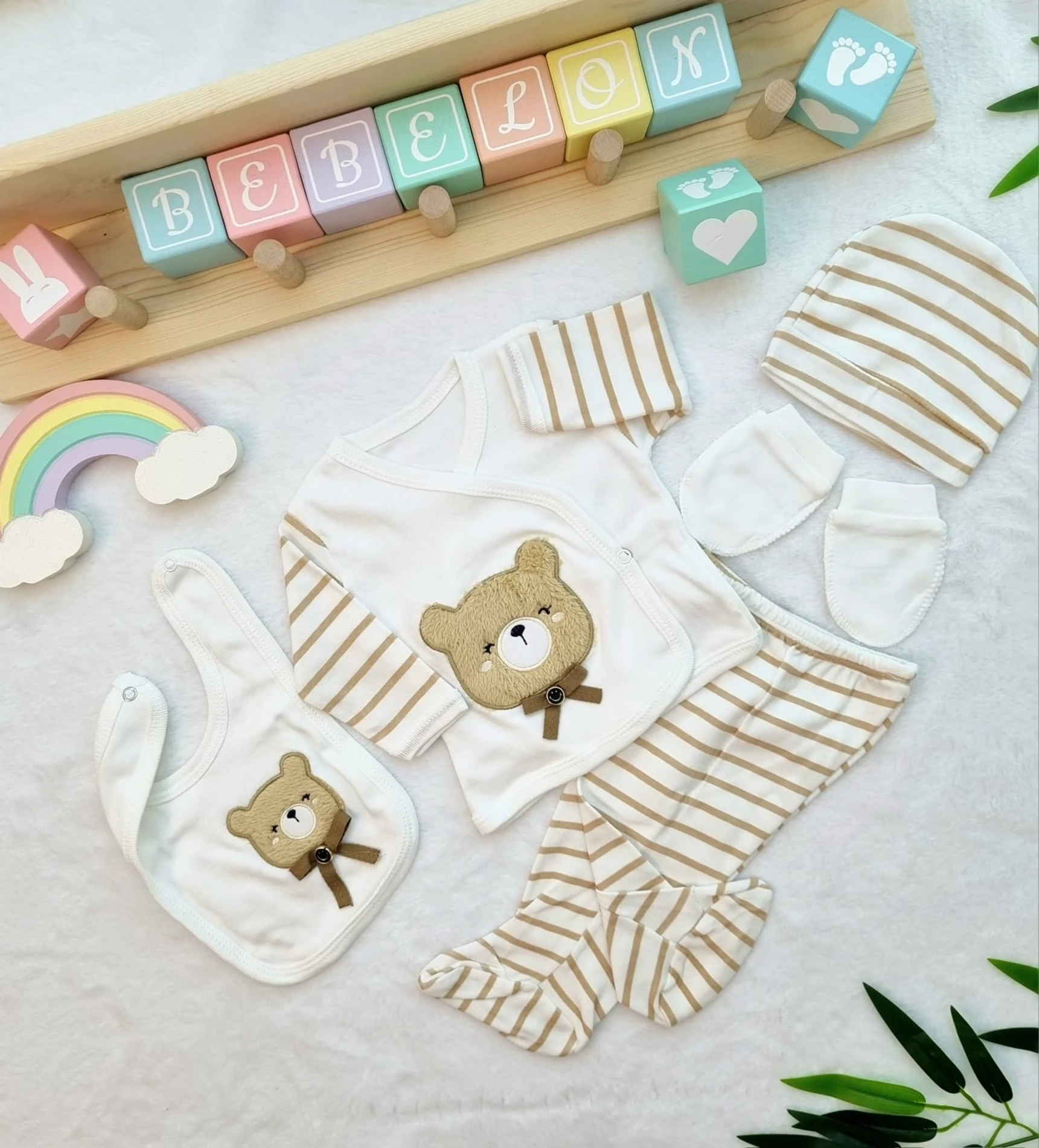 طقم مكون من 3 قطع بأكمام طويلة للأولاد الرضع من قماش وافل مزين بطبعة بالونات وقفازات مدمجة. ناعم، قابل للتنفس ومريح، مثالي للارتداء طوال اليوم.