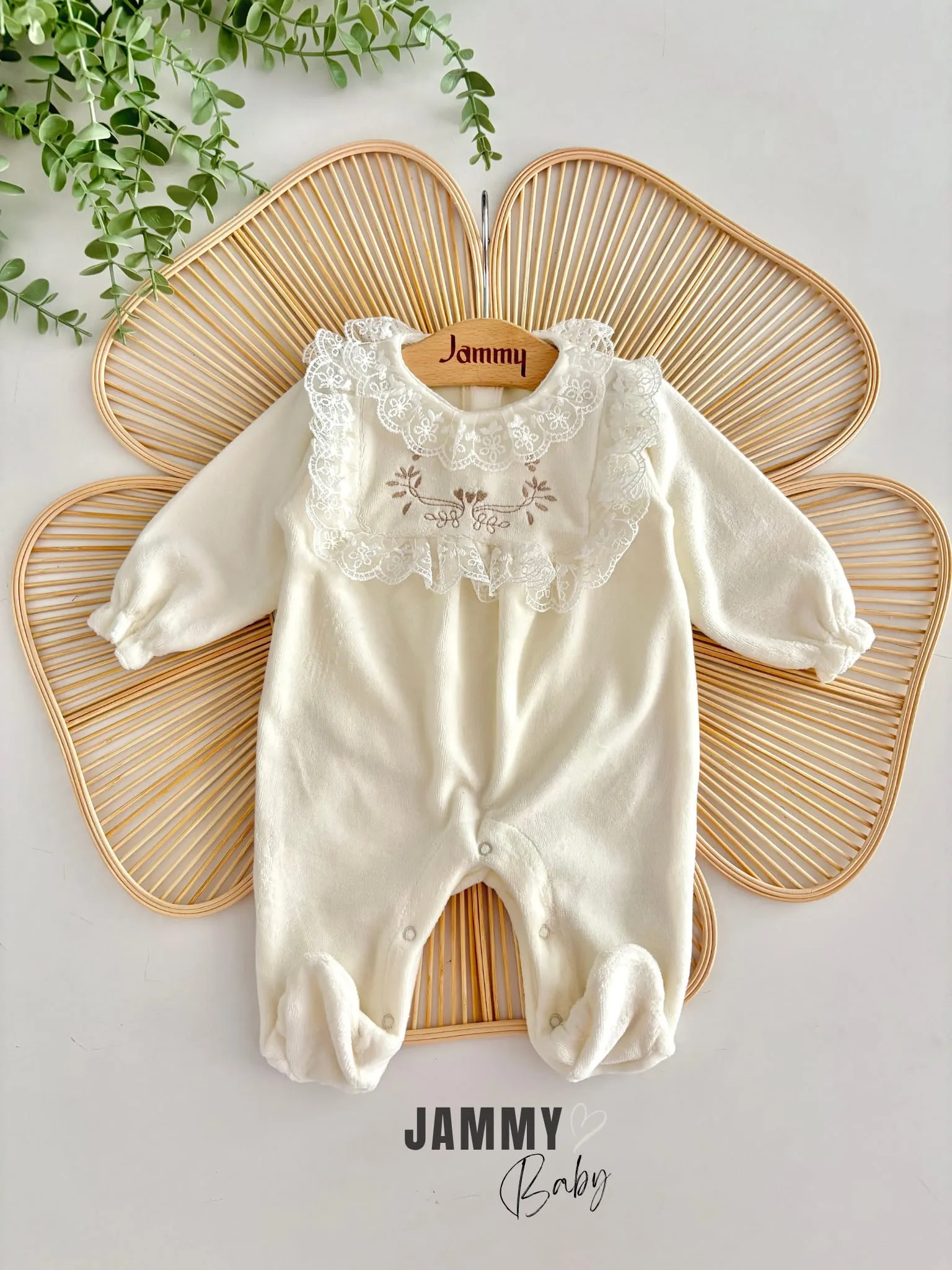 طقم رومبر دانتيل بياقة بيتر بان للبنات الرضع