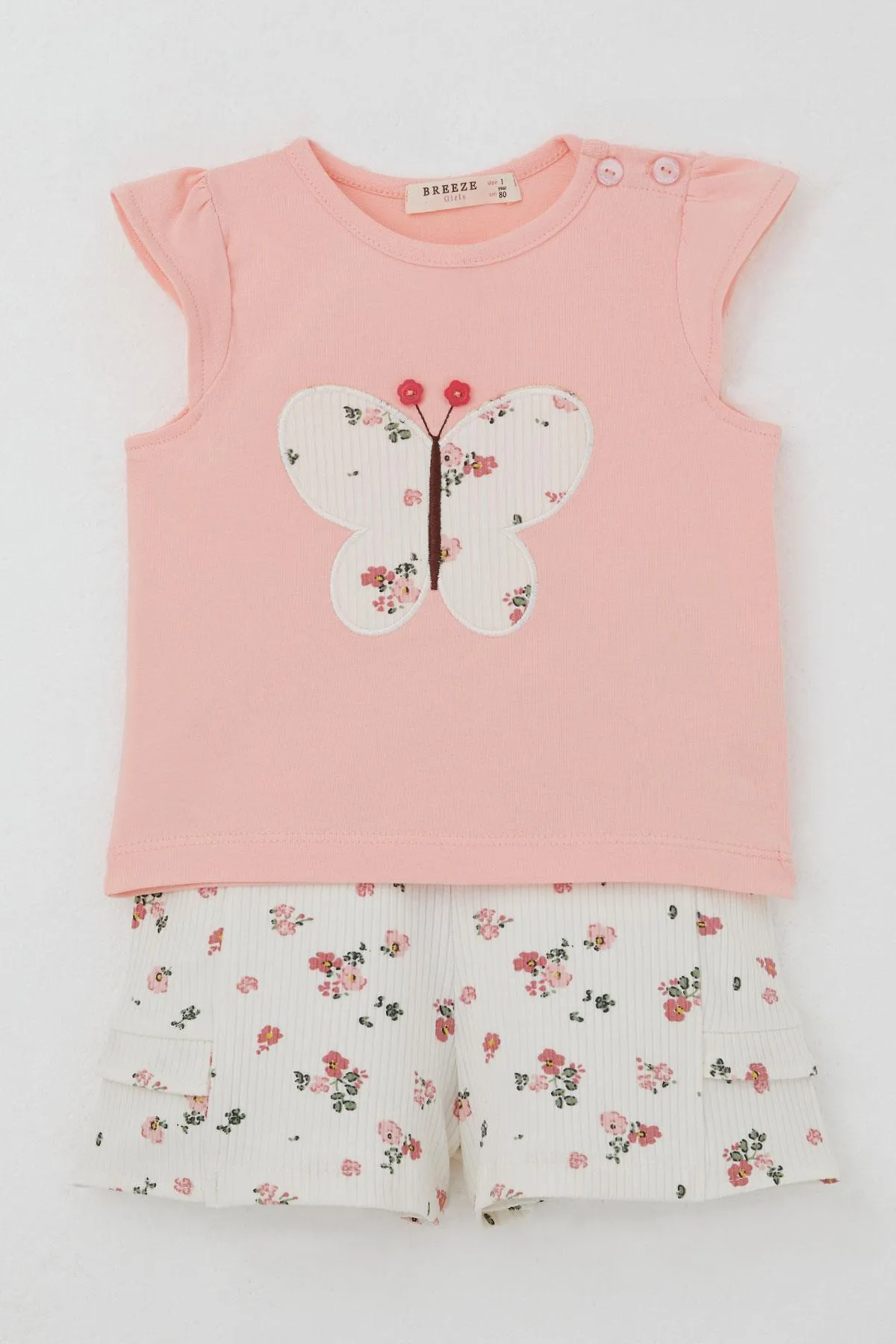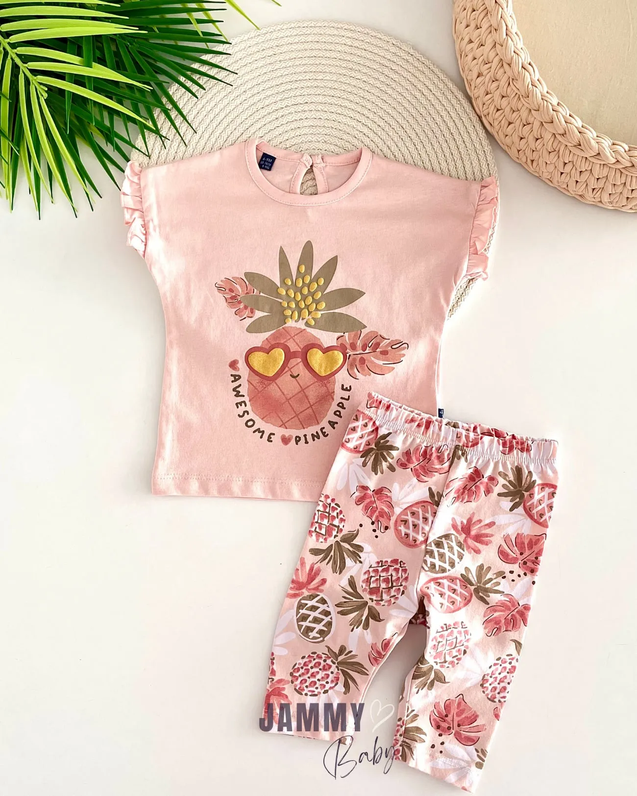 طقم موسمي مطبوع بتفاصيل كشكشة للبنات الرضع - Beyond Store