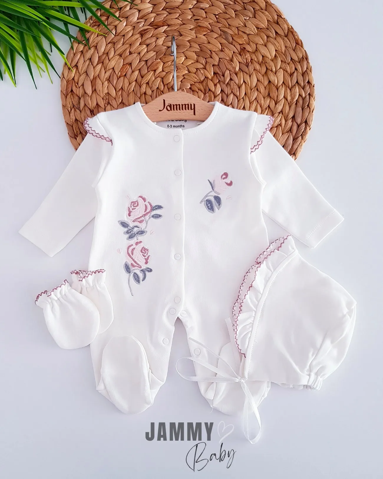 رومبر دنيم بتفاصيل أزرار وتطريز زهري للبنات الرضع مصنوع من مزيج قطن ناعم مع ألياف مطاطية لراحة وتهوية مثالية وملاءمة مريحة للاستخدام اليومي.