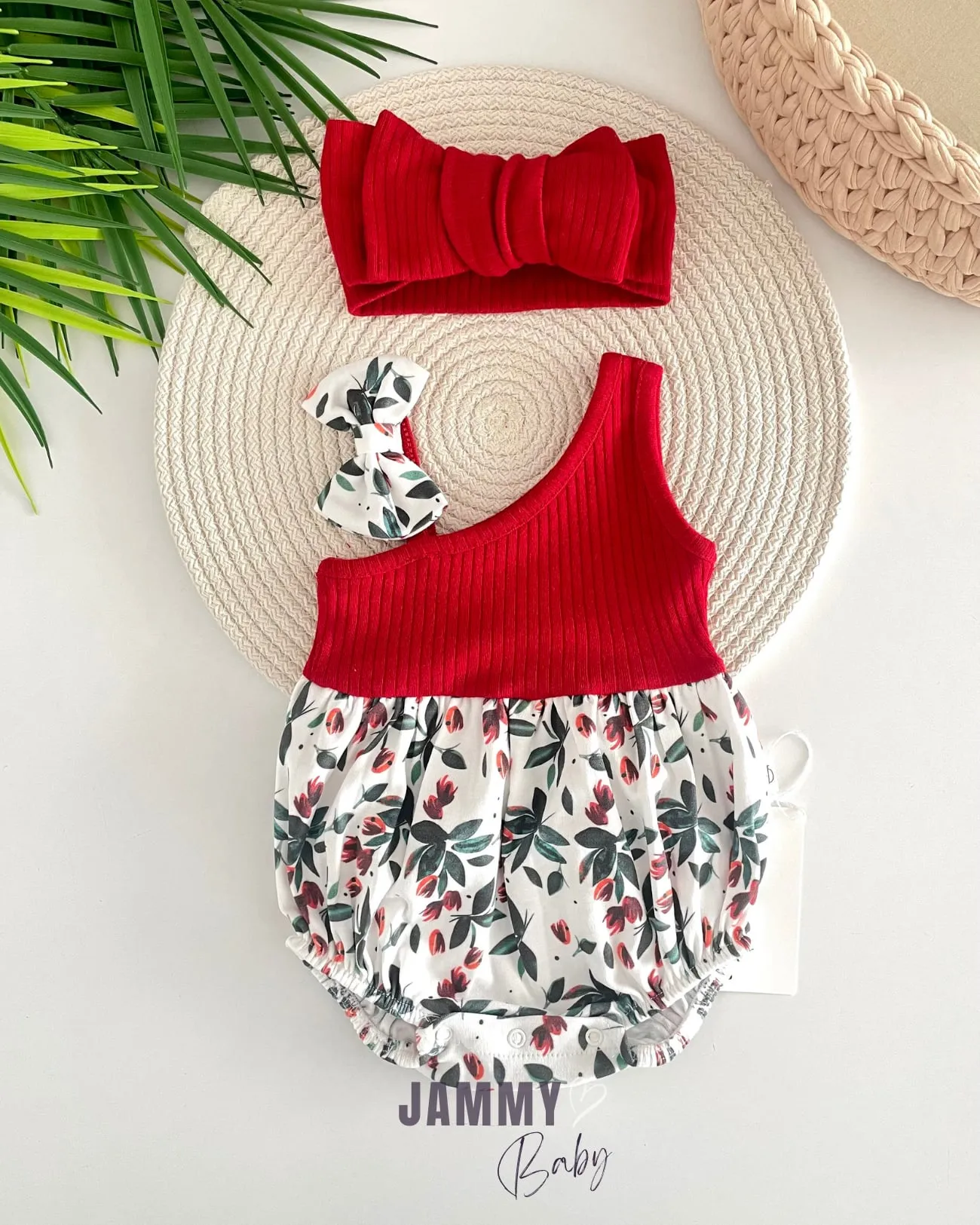 طقم رومبر قطني وافل مع قبعة للبنات الرضع - Beyond Store