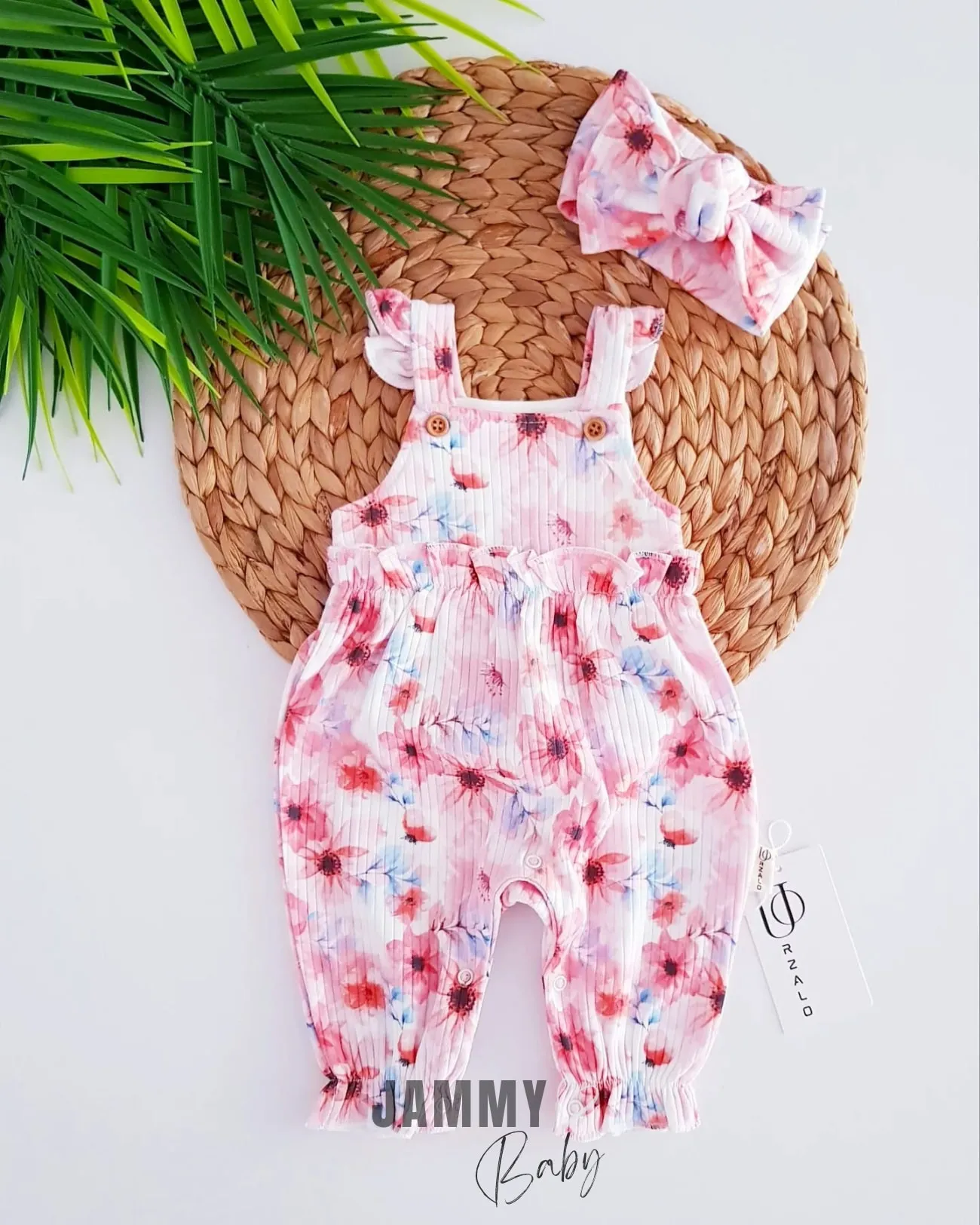 طقم رومبر بأزرار مع قبعة مطابقة للبنات الرضع مصنوع من قطن ناعم 100٪ يمنح راحة وتهوية ولمسة لطيفة مع أناقة كلاسيكية مناسبة للاستخدام اليومي.