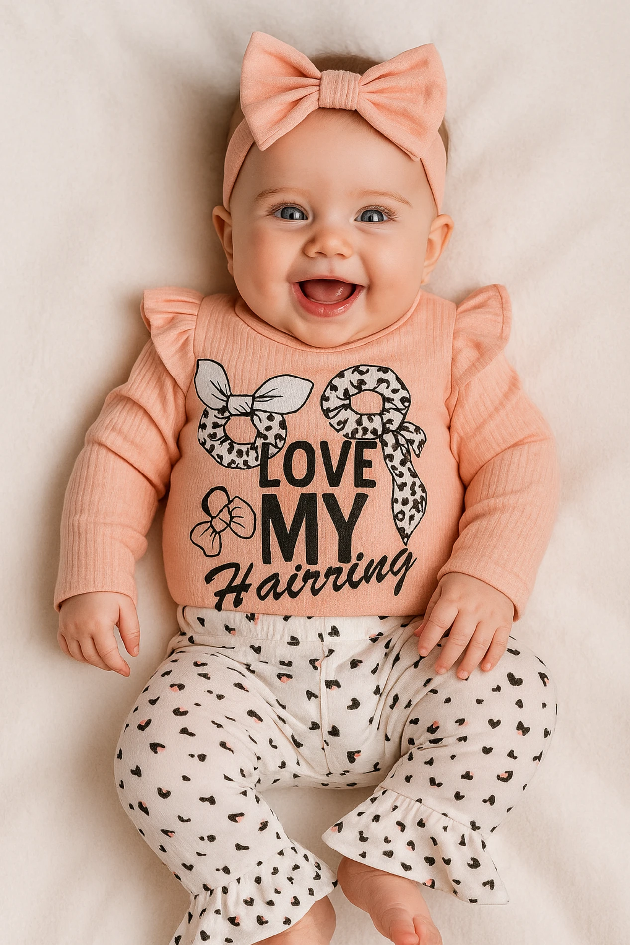 طقم مكون من قطعتين بأكمام طويلة ومطرز مع تفاصيل كشكشة للبنات الرضع. ناعم، قابل للتنفس ومريح، مثالي للارتداء طوال اليوم ومناسب لجميع الفصول.