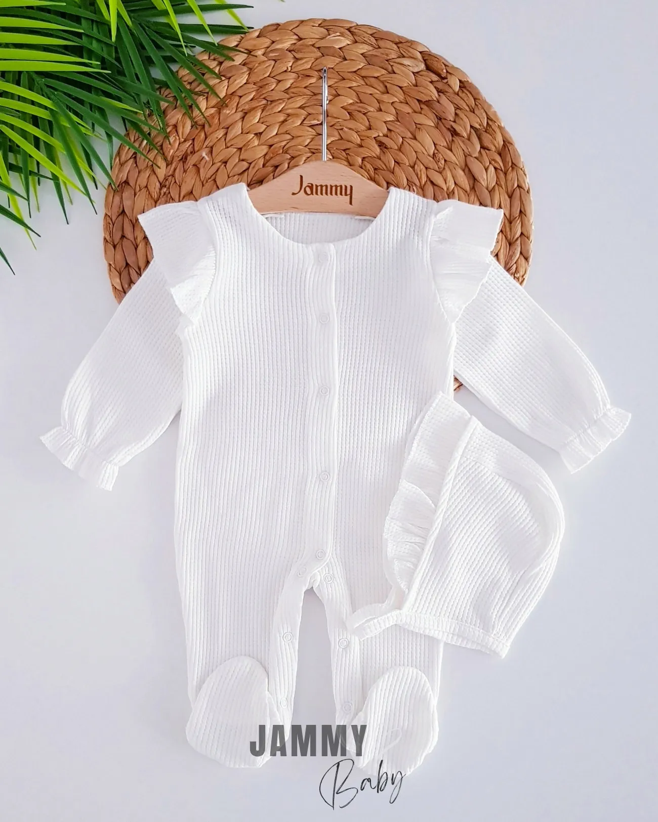 بدلة واقية من الرياح بغطاء رأس وأكمام طويلة من الصوف الناعم المنقوش للبنات الرضع مع أزرار أمامية. ناعمة ودافئة ومناسبة للأيام الباردة.