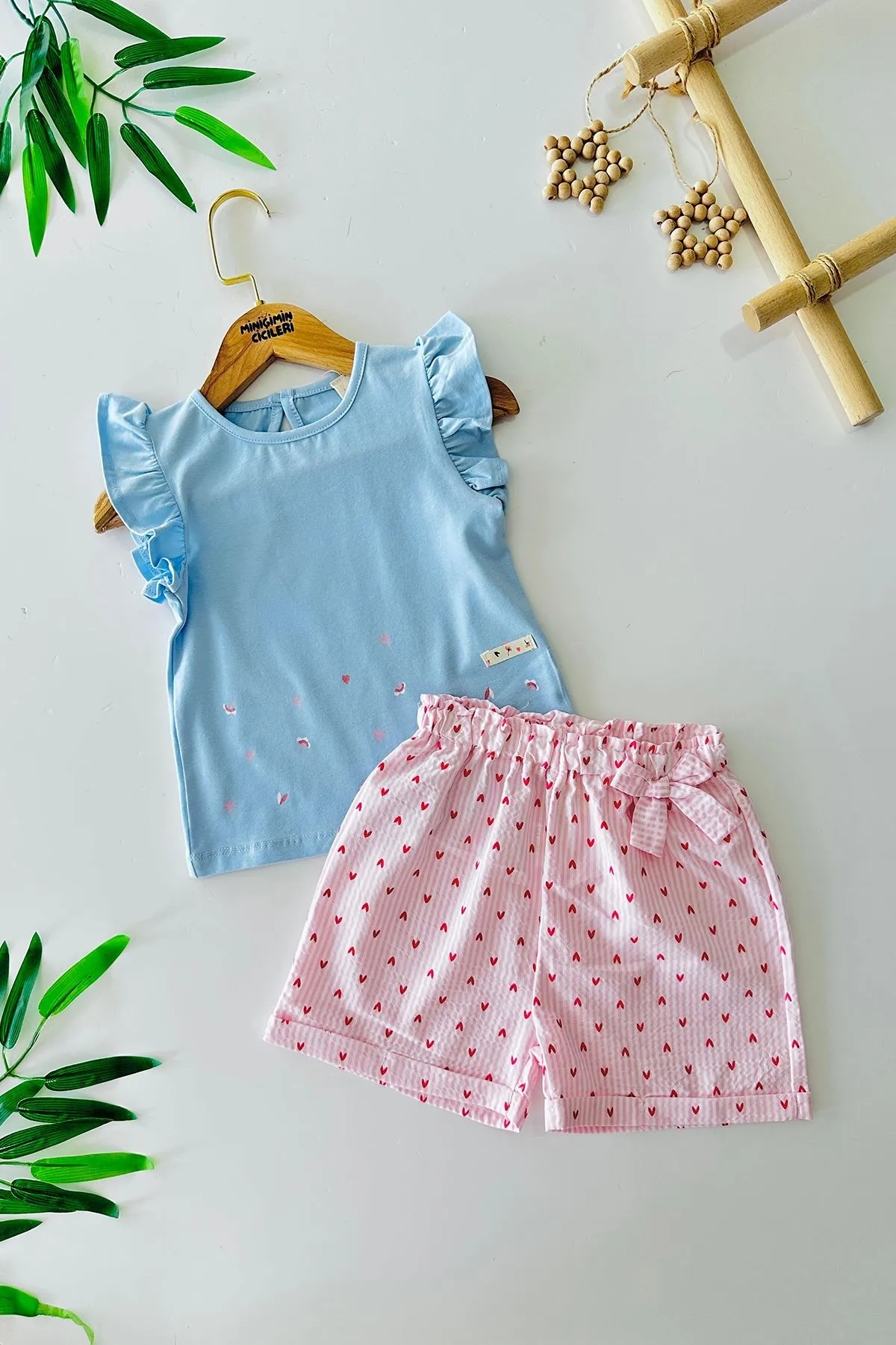 طقم مكون من 3 قطع للبنات الصغار يضم بلوزة بأكمام طويلة مطبوعة ومطرزة مع كشكشة، مع بنطلون ، مثالي للاستخدام اليومي.