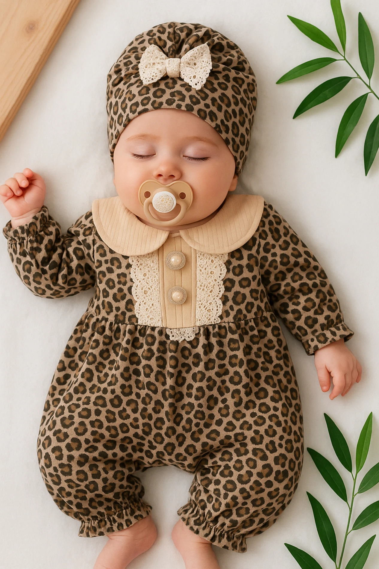 بدلة جسم للبنات الصغار بأكمام طويلة محبوكة ومضلعة مع كشكشة وأزرار. ناعمة ومريحة للاستخدام اليومي.