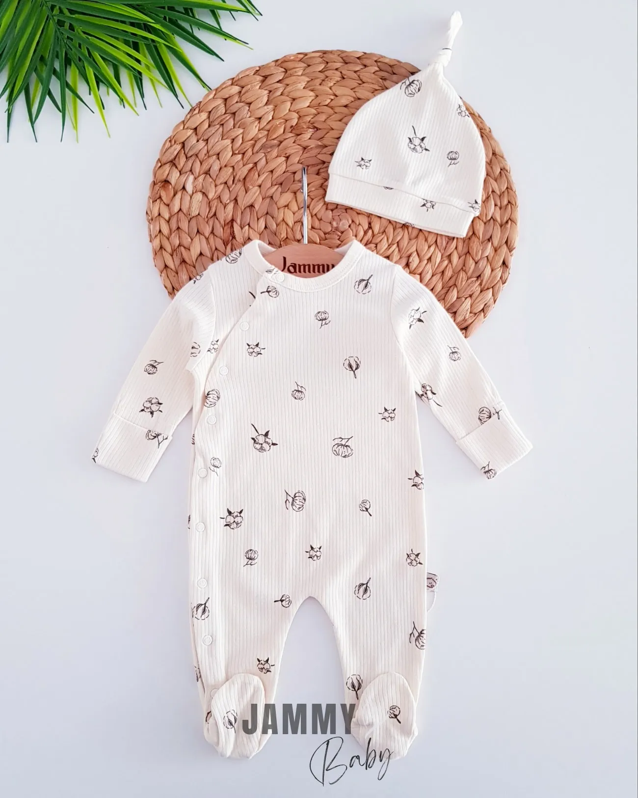 بدلة جسم للجنسين بأكمام طويلة وياقة دائرية مضلعة مطبوعة مع أزرار كبس وقفازات مدمجة. ناعمة ودافئة وعملية للاستخدام اليومي.