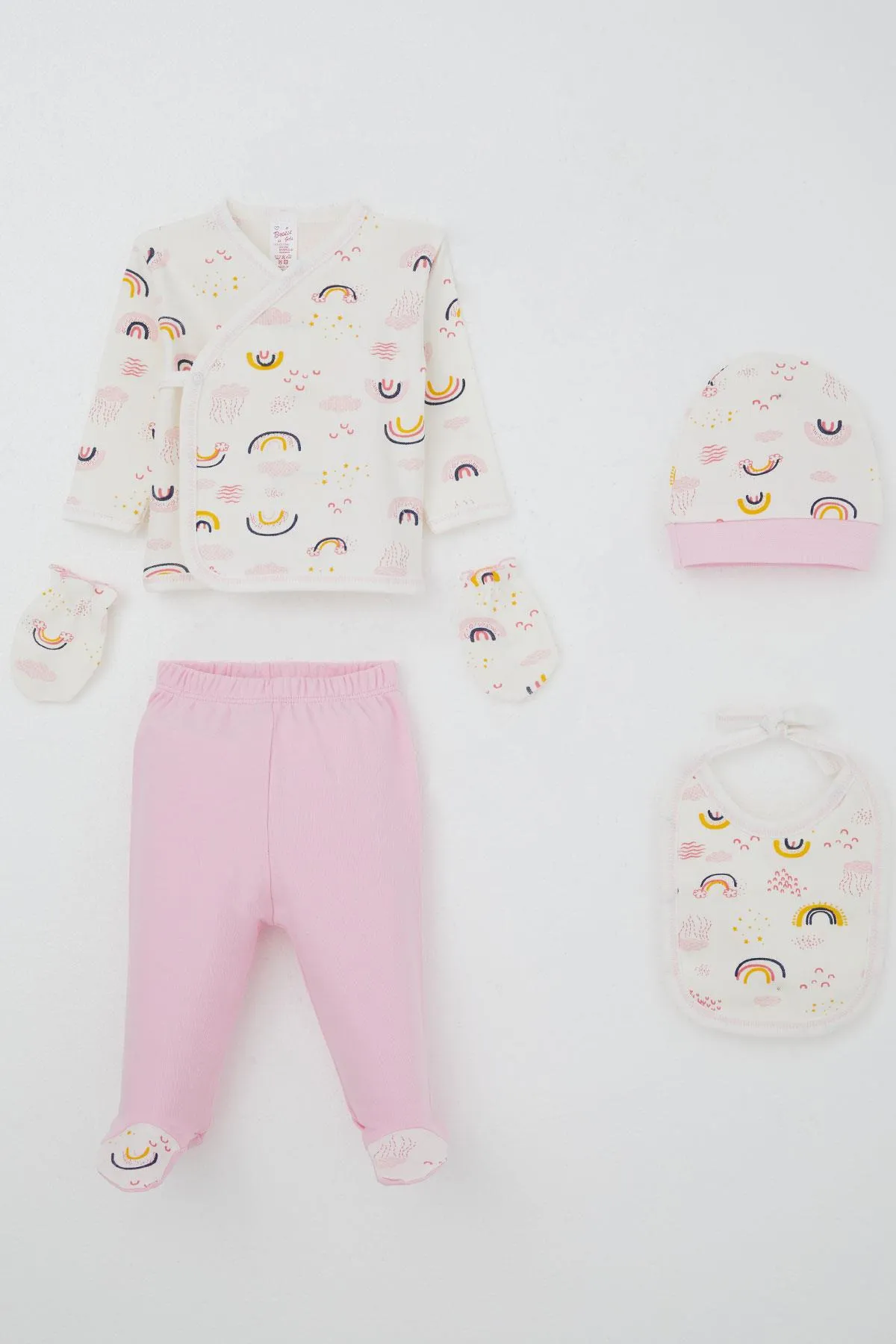 طقم ملابس كاجوال قطني مطرز للبنات الصغار مكون من 5 قطع مع تطريز مفتوح - Beyond Store