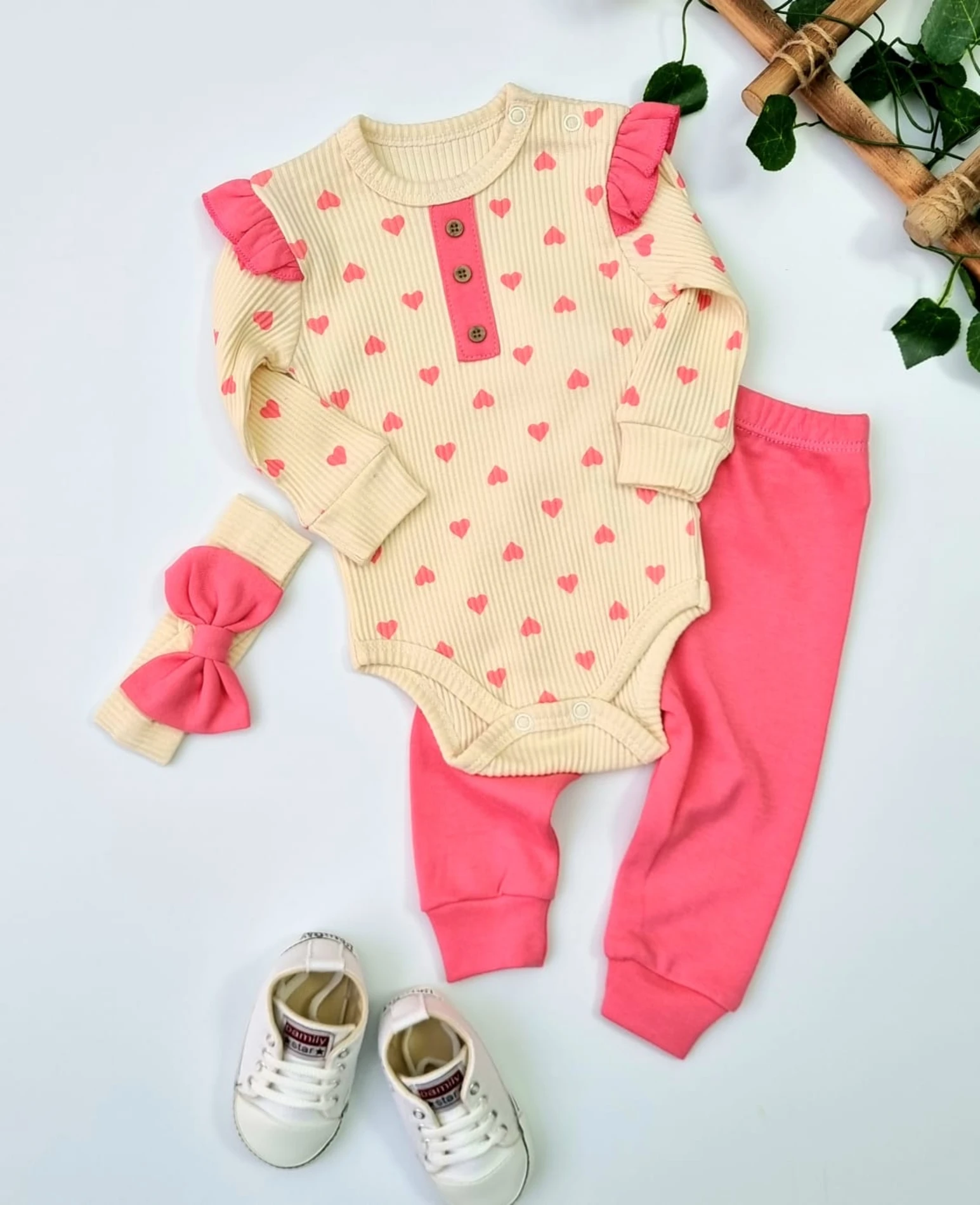 طقم مكون من 5 قطع للبنات الصغار مصنوع من القطن المطرز مع تفاصيل دانتيل مفتوح، يجمع بين الراحة والأناقة المرحة للاستخدام اليومي.