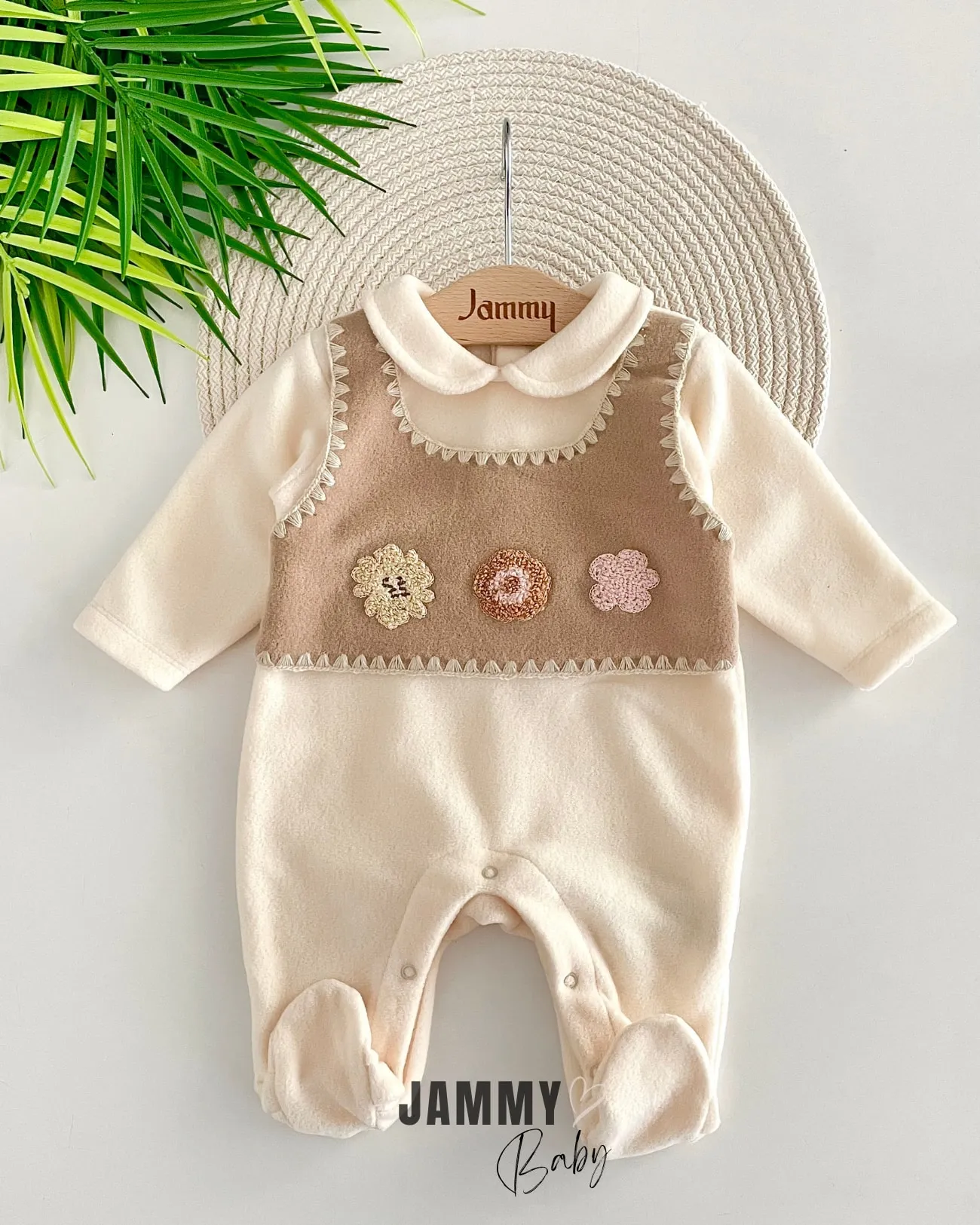 بودي سوت بقبعة وياقة بيتر بان من قماش بوبلين منقوش للبنات الرضع - Beyond Store