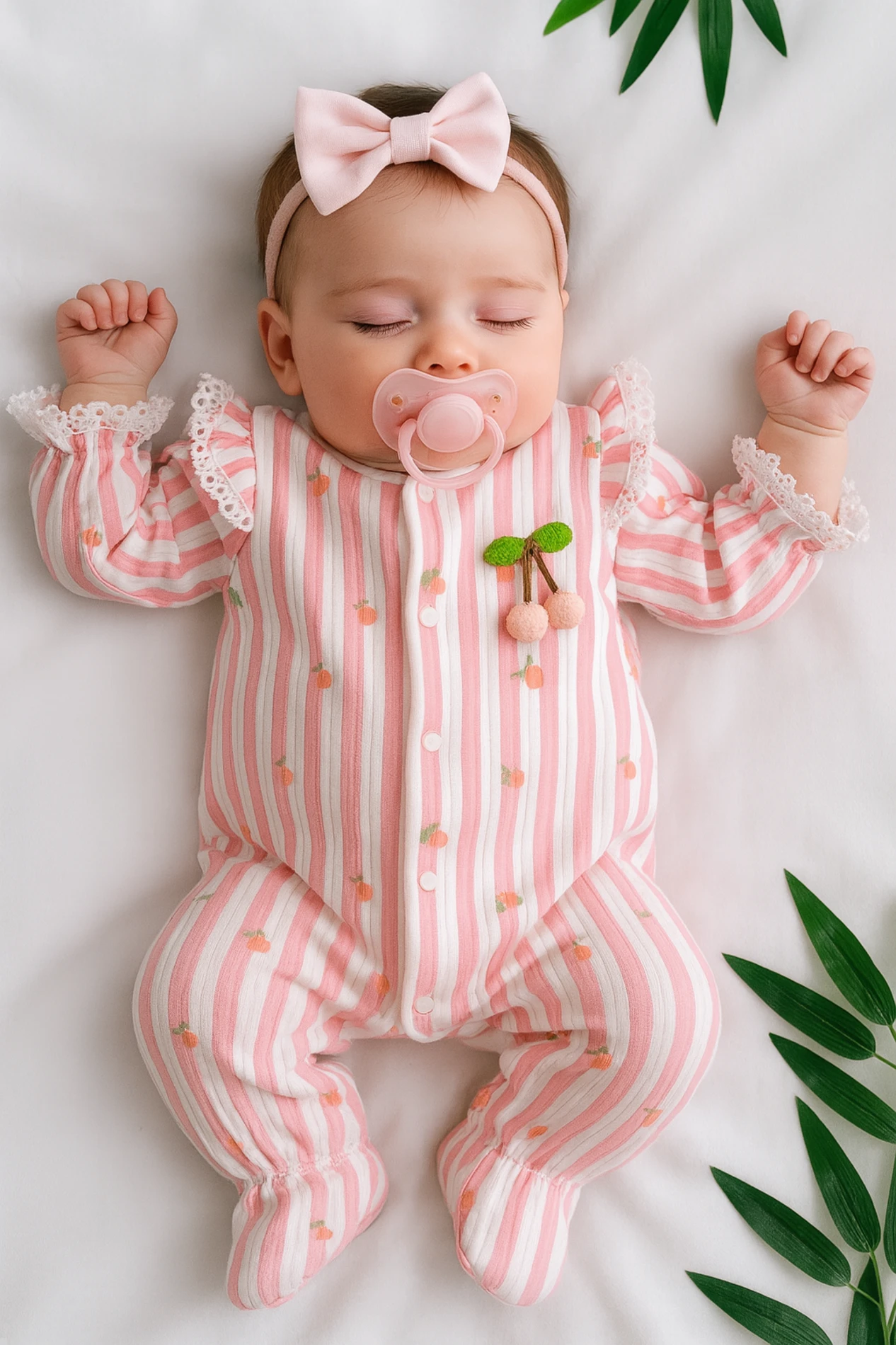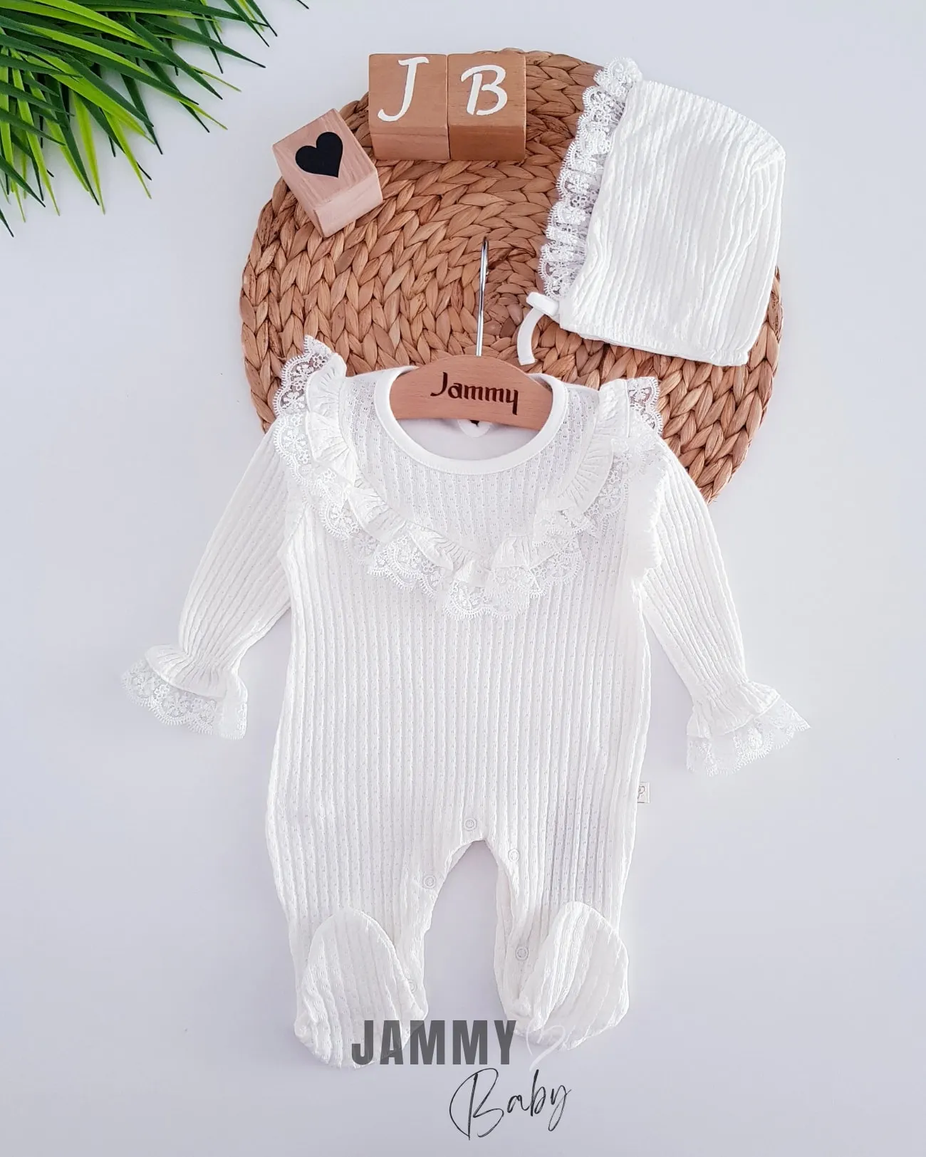 بودي سوت بقبعة للبنات الرضع من قماش بوبلين منقوش مع ياقة بيتر بان. ناعم، قابل للتنفس ومريح، مثالي للارتداء طوال اليوم ومناسب لجميع الفصول.