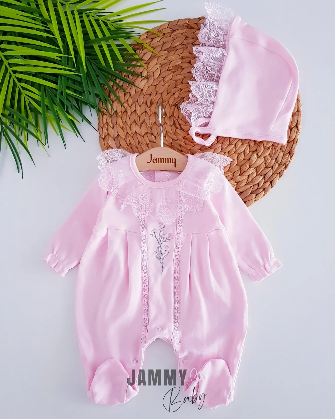 بودي سوت بقبعة للبنات الرضع من قماش بوبلين منقوش مع ياقة بيتر بان. ناعم، قابل للتنفس ومريح، مثالي للارتداء طوال اليوم ومناسب لجميع الفصول.