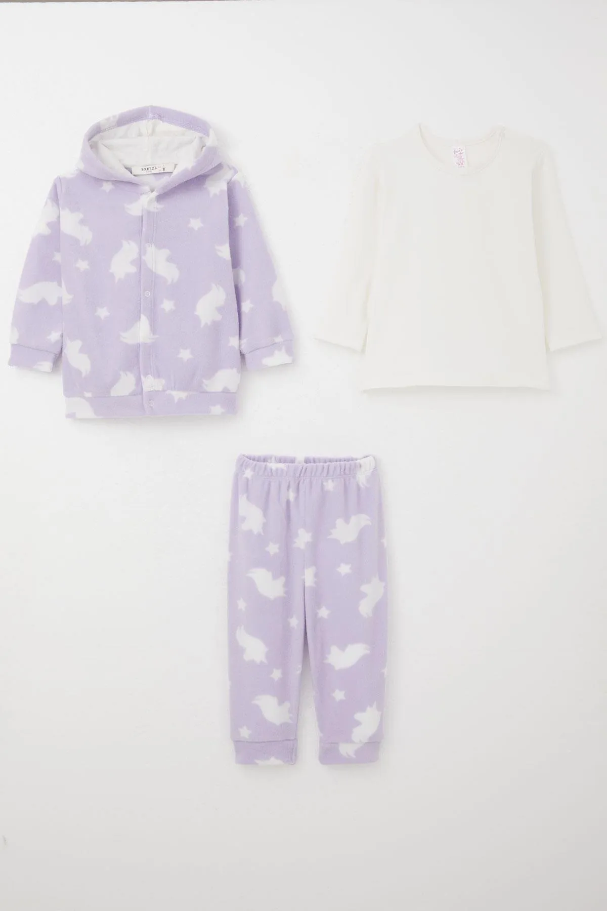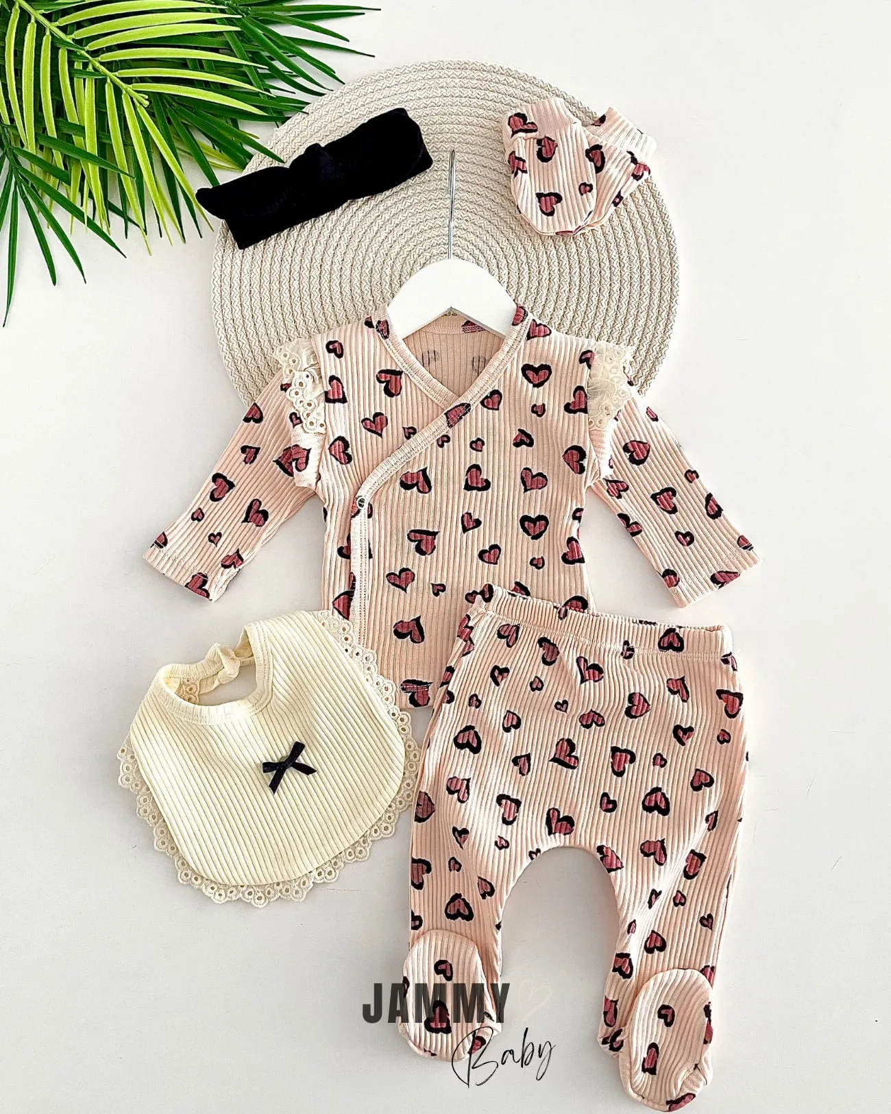 طقم مكون من قطعتين بأكمام قصيرة منقوشة للبنات الرضع مع خصر مطاطي وأزرار. ناعم، قابل للتنفس ومريح، مثالي للارتداء اليومي واللعب المرح.