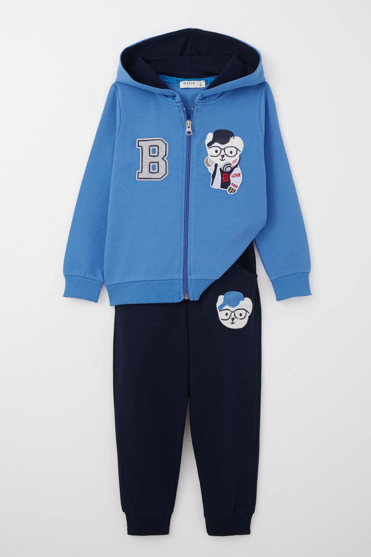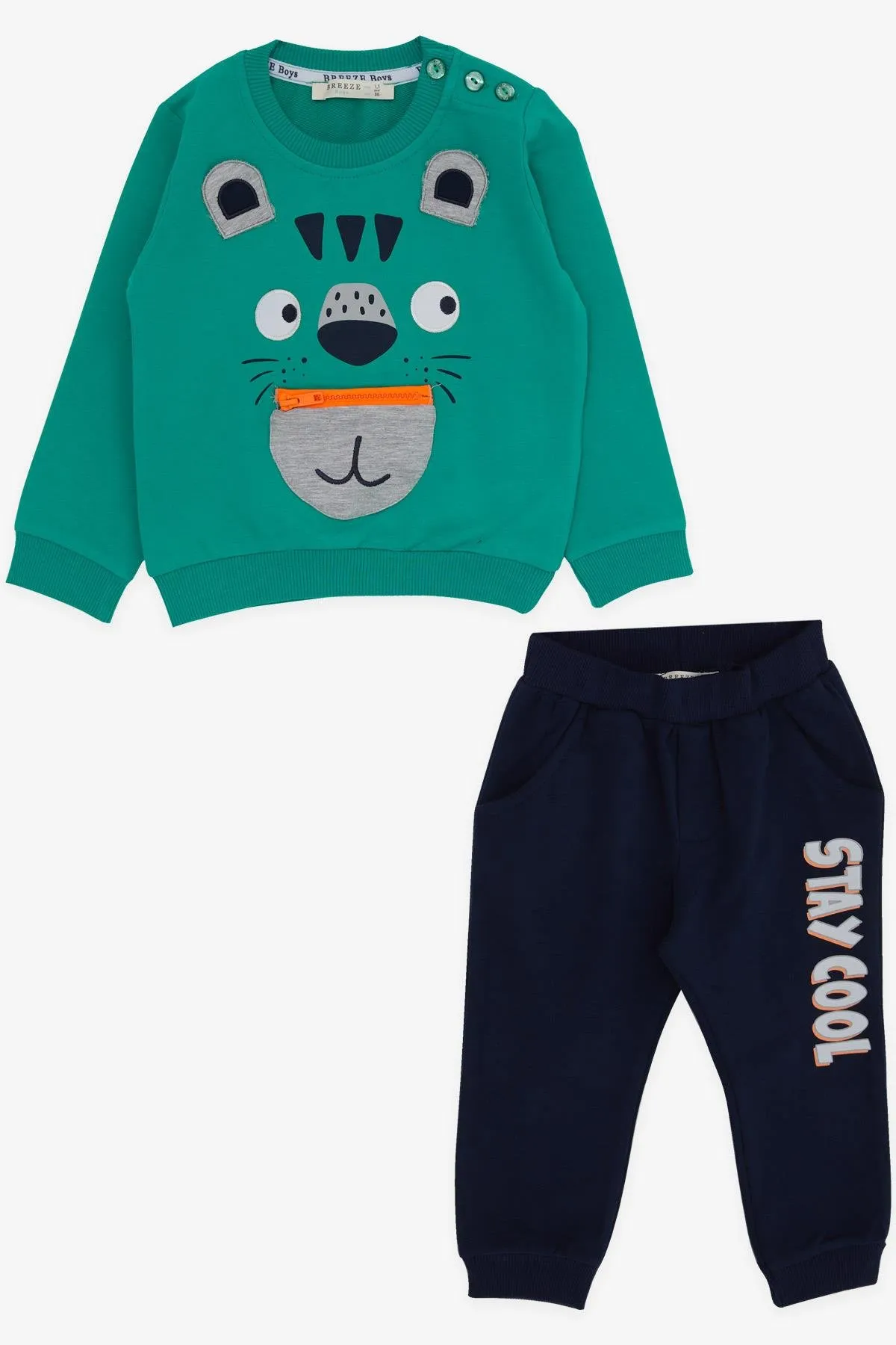 طقم أولاد مكون من قطعتين يضم بنطال بجيوب جانبية بتصميم واسع من قماش جاكار مزخرف،