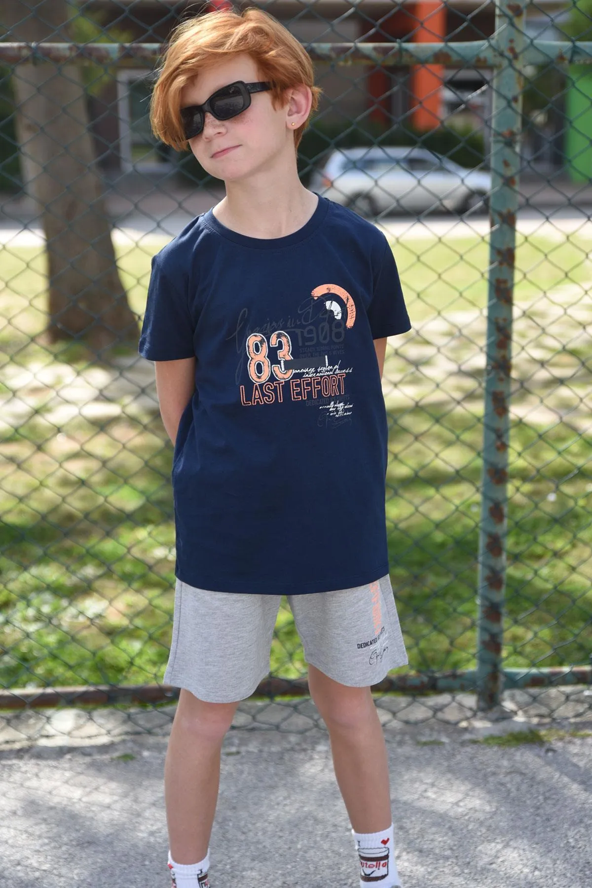 طقم شورتات للأولاد مصنوع بالكامل من القطن.
