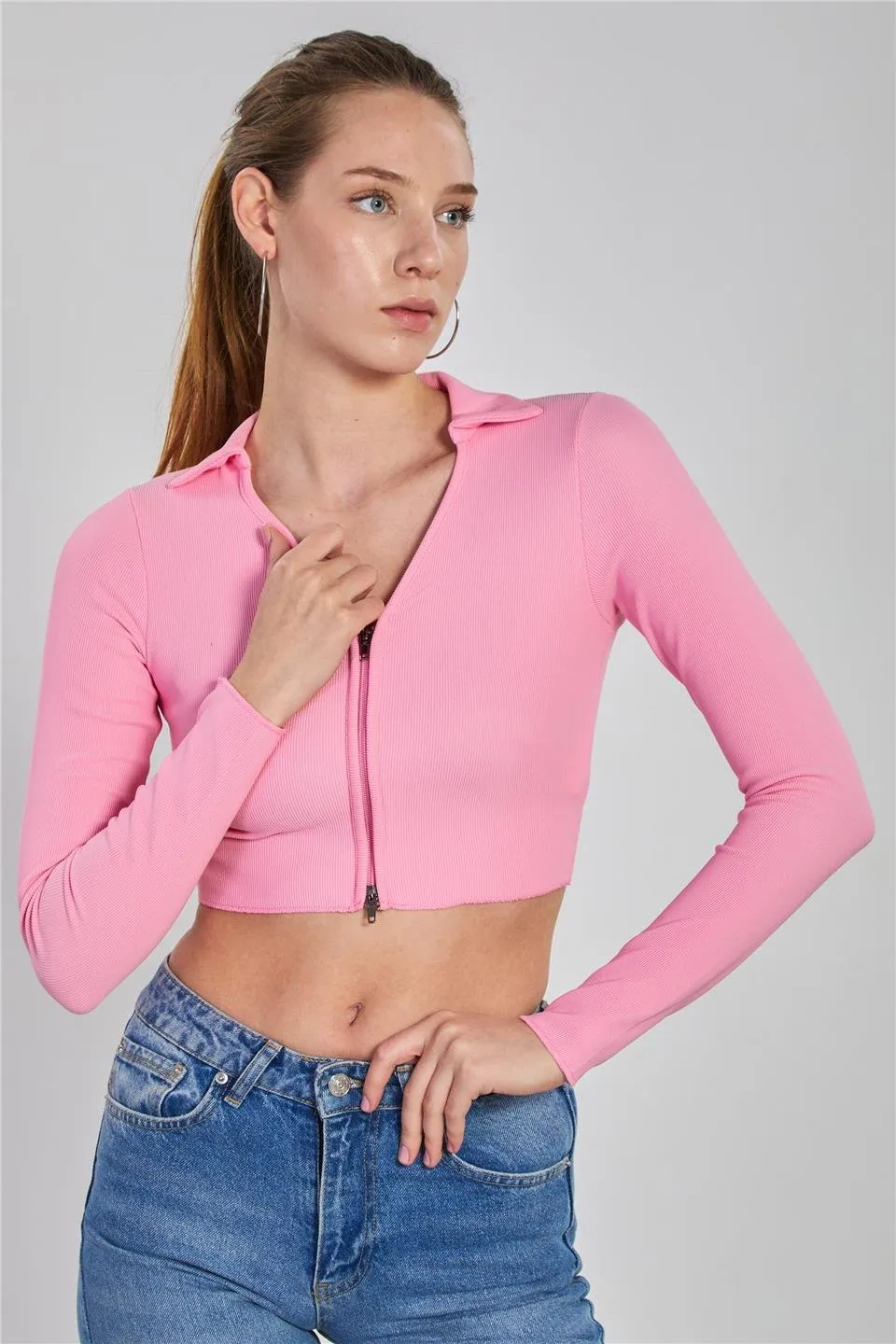 بودي نسائي ضيق مزين بالأحجار بأكمام طويلة وياقة مدورة نصف مدورة